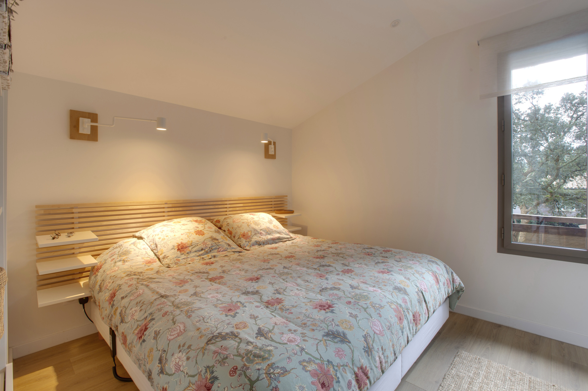Édifiée sur un terrain plat et arboré de plus de 1 100 m2, sans vis-à-vis, elle bénéficie d'une exposition plein sud qui permet de profiter du soleil du matin au soir, notamment autour de la piscine. La villa IRATZEA s'ouvre au rez-de-chaussée sur une belle pièce de vie lumineuse avec cuisine haut de gamme et arrière-cuisine, une buanderie et un WC indépendant.