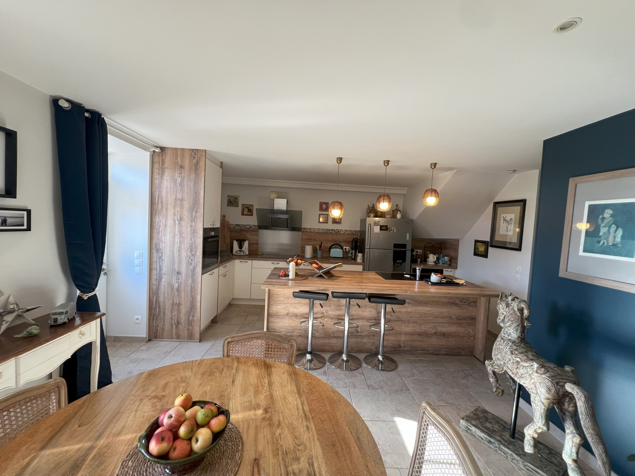 Elle est composée d'une grande pièce de vie avec une cuisine aménagée et équipée, un bureau, un atelier, une salle d'eau et un wc.