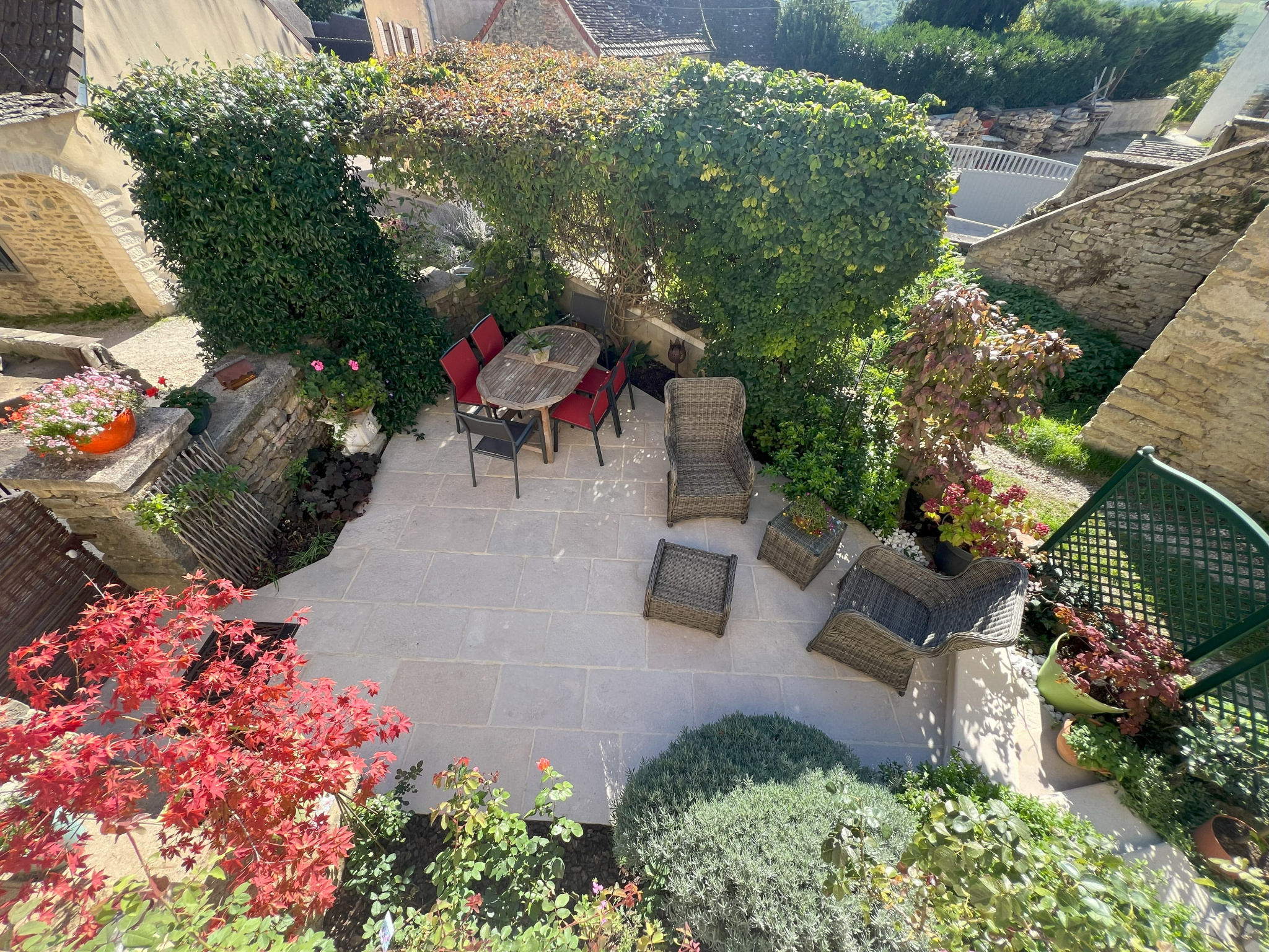 Le tout donnant sur une charmante cour paysagée .