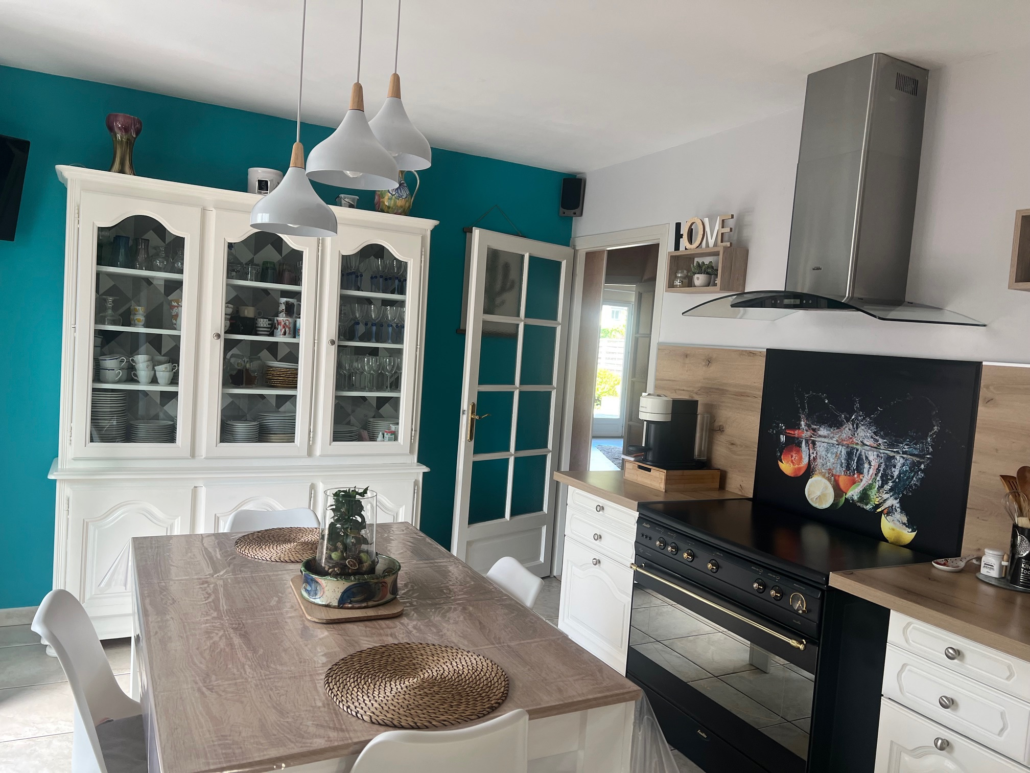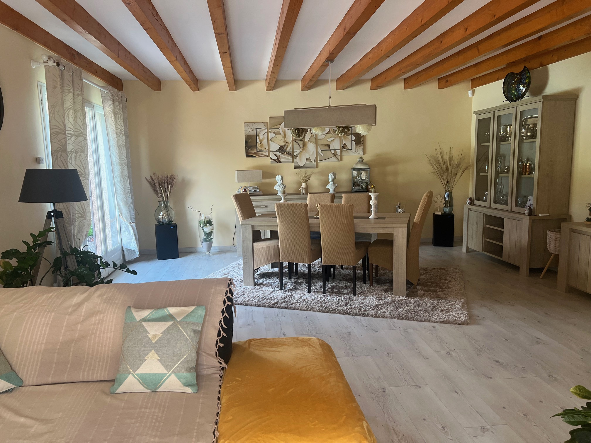 A découvrir cette superbe villa de maçon T5, édifiée sur vide sanitaire, en 2003 sise sur une parcelle de terrain paysagée et close de 1050m2 avec piscine 8 x 4 équipée d'une filtration à sel. Parfaitement entretenue elle propose 178m2 habitables + garage, cave et atelier.