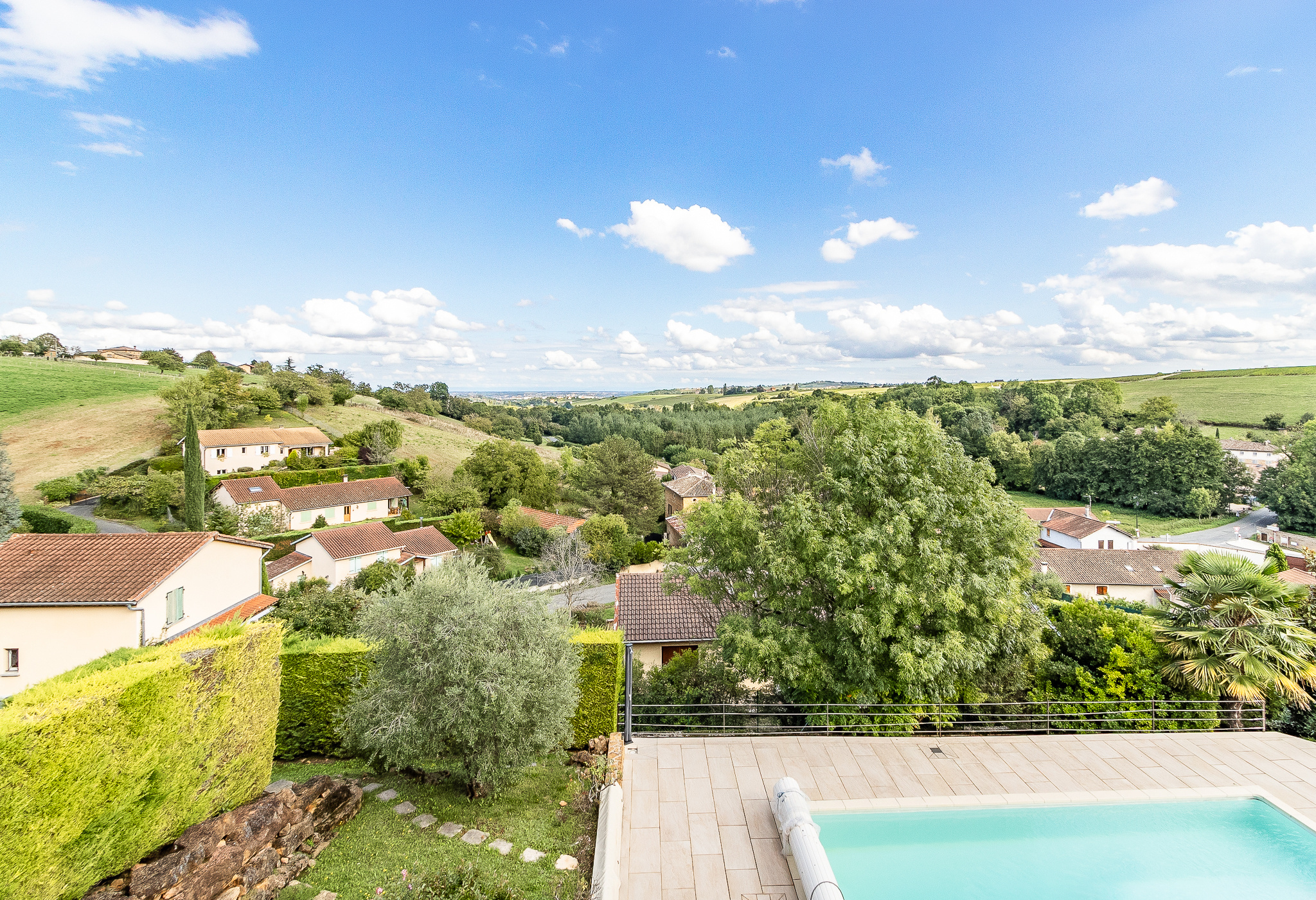 LACENAS : C'est le lieu idéal pour vous établir si vous souhaitez le calme, la vue et poser vos valises ! Une maison comme on n'en fait plus : il s'agit d'une construction traditionnelle avec de très belles hauteurs sous plafond, des pièces de vie spacieuses et lumineuses. La cuisine, le séjour et la salle à manger se poursuivent sur une immense terrasse suspendue qui vous permet de profiter d'un panorama imprenable et unique sur la chaine des Alpes et les collines environnantes. Vous disposerez au rez de chaussée, niveau des pièces de vie, d'une chambre avec une porte fenêtre lui permettant un accès indépendant et salle d'eau privative et d'une suite parentale avec son dressing, sa salle de bains dernièrement rénovée. Un bureau pour du télétravail est également prévu sur ce niveau permettant de faire une chambre supplémentaire si besoin. A l'étage il y a une chambre avec sa salle d'eau privative et un grand espace que les propriétaires ont laissé ouvert mais que vous pourrez à loisirs fermer ou transformer en chambre supplémentaire ou salle de sport. Amoureux de belles voitures ou de possibilités de rangement vous serez gâtés avec le sous sol complet. Légèrement décalé, l'espace piscine est un lieu de repos avec sa terrasse couverte et son espace sanitaire. Nul doute, vous serez charmés par cette maison de qualité : cour pavés, terrain clos, portail automatique, climatisation, volets électriques.... le tout à 12 mn de la gare de Villefranche et de l'A6, dans un village avec les commerces de proximité et le pôle médical. Contactez moi au 06 87 49 66 72 Sandrine pour une visite.