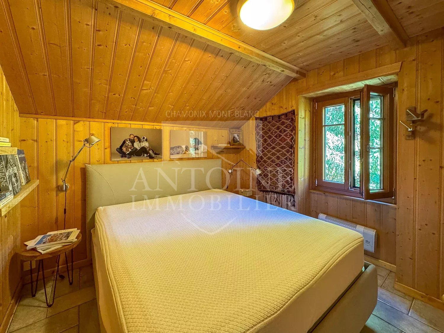 Antoine Immobilier vous propose cet appartement en duplex situé au dernier étage d'une villa des années 1930. Nichée dans un parc privé de plus de 3000 m², cette propriété se trouve dans le secteur résidentiel très prisé des Nants, entourée de verdure et très tranquille. L'appartement a l'ambiance d'un refuge de montagne, avec son poêle à bois entouré de pierres apparentes.