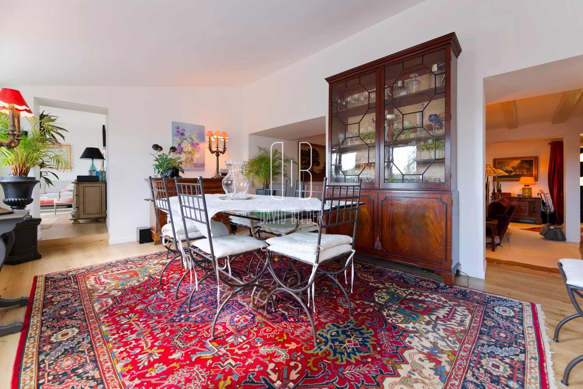 La maison offre deux espaces salons, pensés pour chaque saison, un salon cheminée cosy et un salon d’été baigné de lumière, ouvert sur le jardin exposé plein sud. Une salle à manger vue sur le jardin et une cuisine équipée et aménagée.