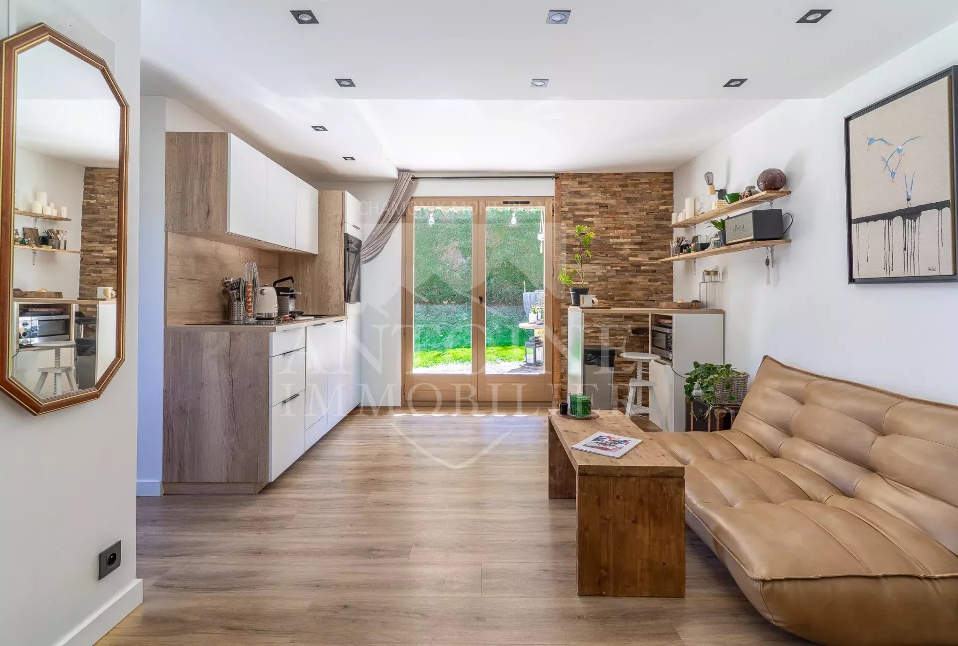 L'appartement séduit par son ambiance chaleureuse, ses prestation soignées (parquet, peintures et sanitaires neufs, décoration contemporaine) et son extérieur parfaitement entretenu, qui devient une véritable pièce de vie supplémentaires aux beaux jours.