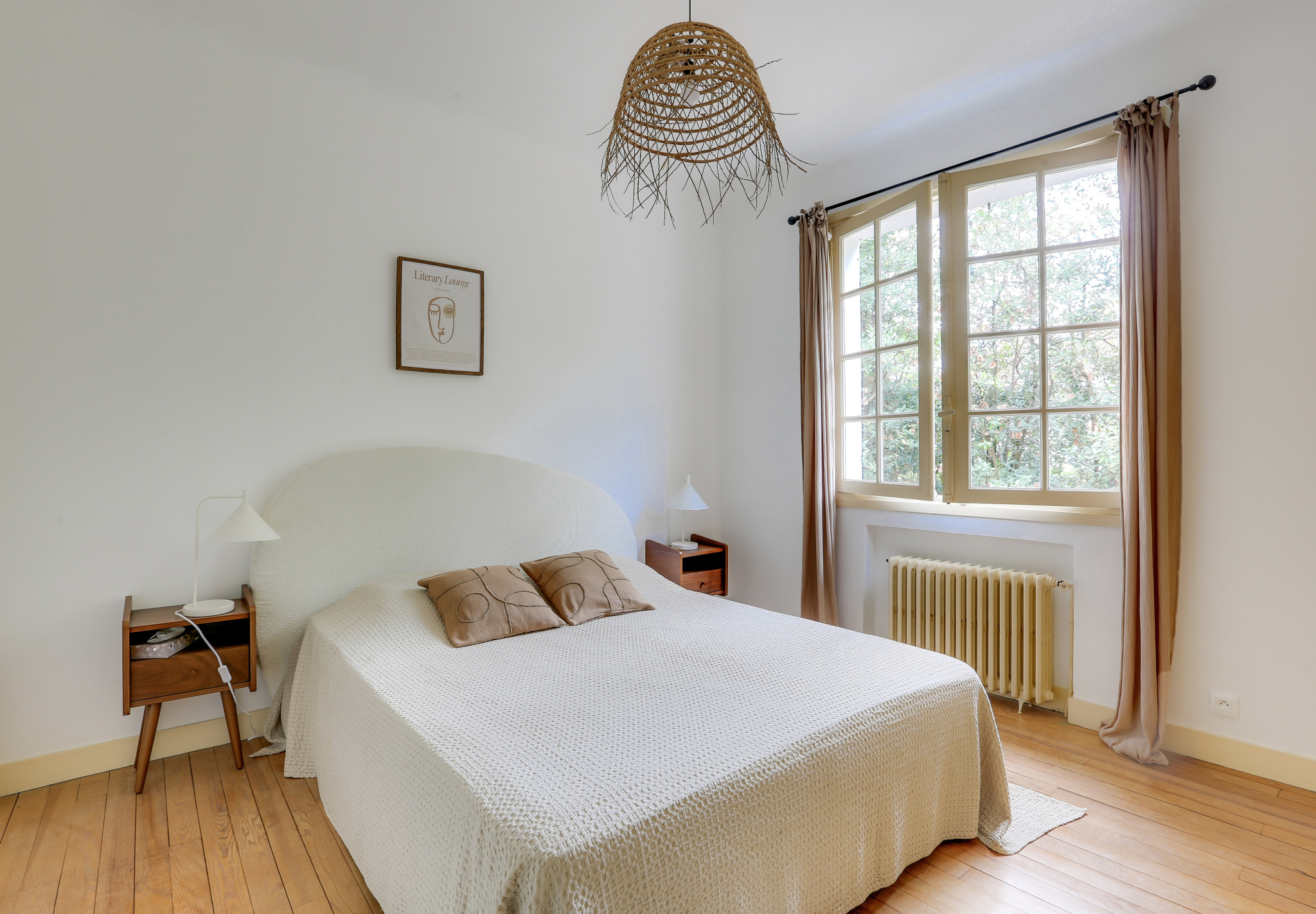 Repensée par une décoratrice d'intérieur, elle se distingue par son élégance et le charme typique des années 60. La villa se compose d'une belle entrée, d'un séjour lumineux grâce à ses grandes ouvertures, d'une cuisine indépendante, de trois chambres avec rangements dont une suite parentale, ainsi que de deux salles d'eau. Les combles offrent un espace supplémentaire modulable selon vos besoins.