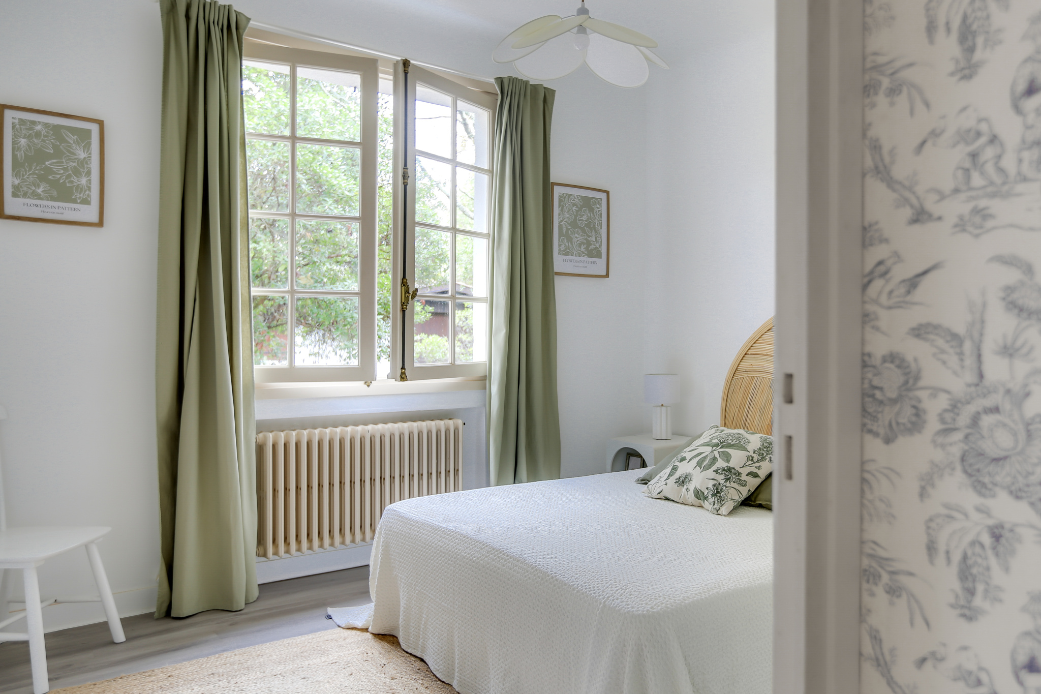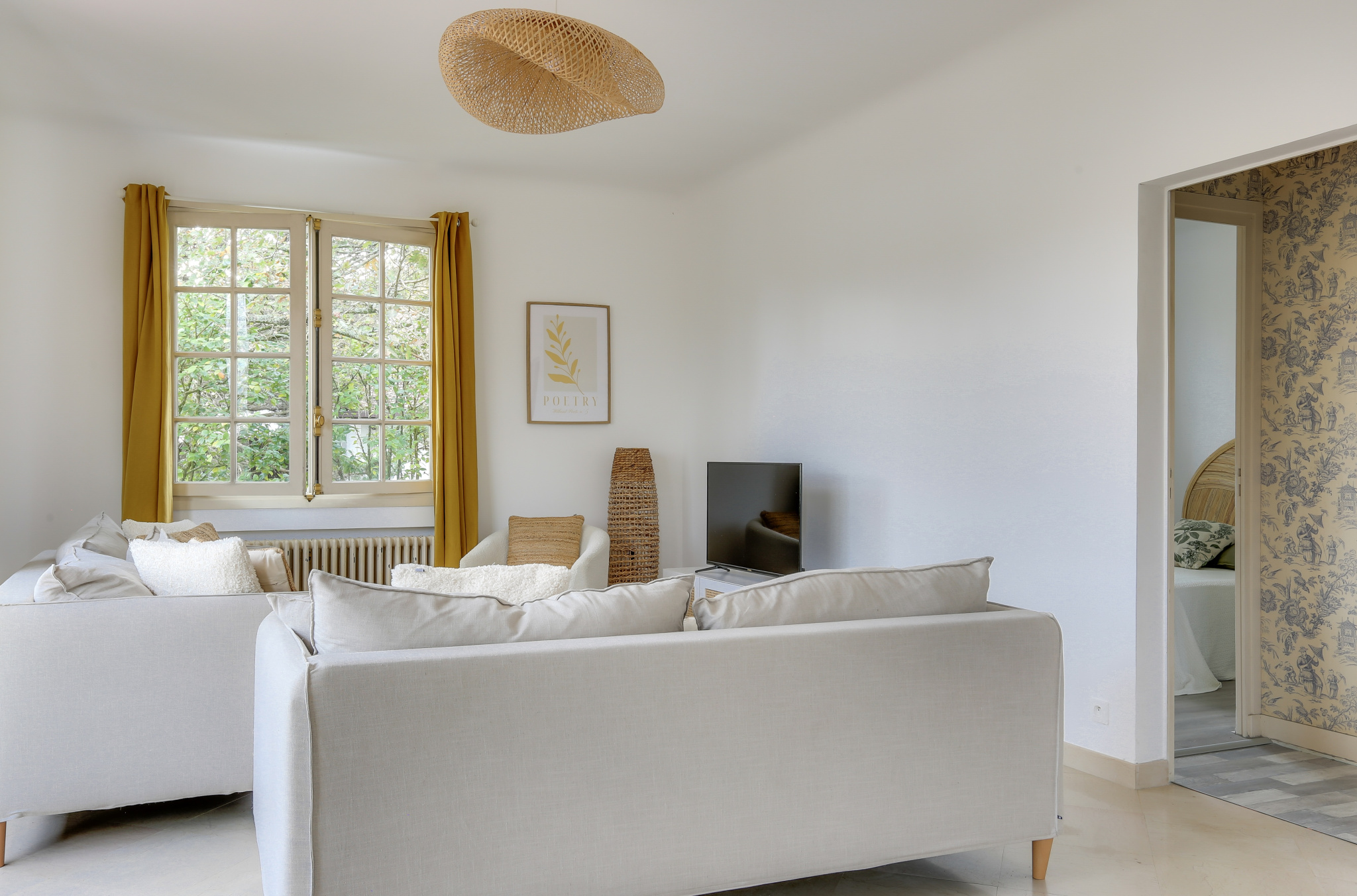 Repensée par une décoratrice d'intérieur, elle se distingue par son élégance et le charme typique des années 60. La villa se compose d'une belle entrée, d'un séjour lumineux grâce à ses grandes ouvertures, d'une cuisine indépendante, de trois chambres avec rangements dont une suite parentale, ainsi que de deux salles d'eau.
