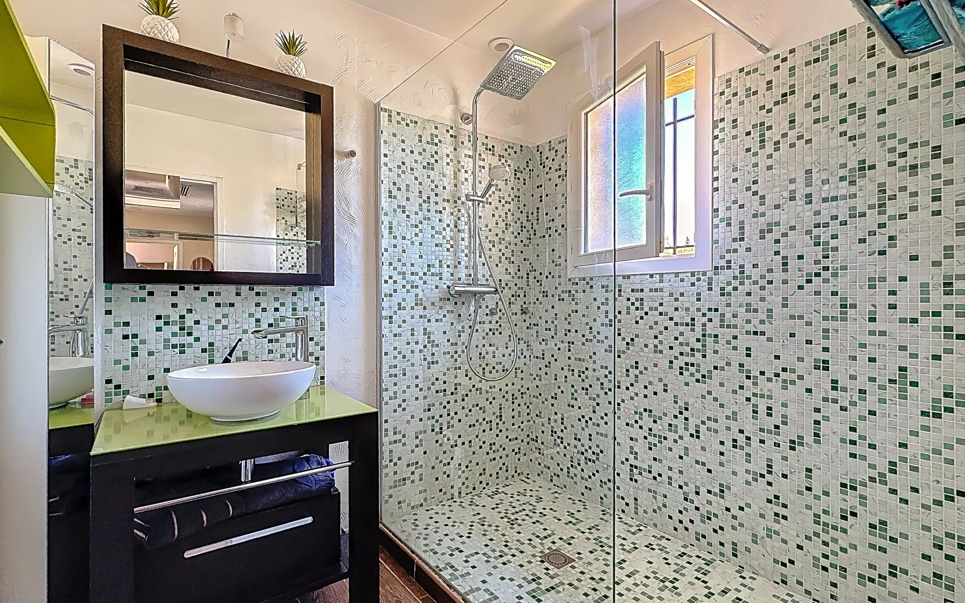 Sur le territoire de la Roquette sur Siagne, à seulement quelques minutes de Mougins, maison récente (2007) de 117 m² comprenant un vaste séjour-cuisine de 60 m² et trois chambres. Terrain plat de 1 300 m², au calme, sans vis-à-vis, avec piscine et espaces extérieurs soignés : jardin méditerranéen, garage, abri voiture et plusieurs stationnements. Confort moderne : plancher chauffant par pompe à chaleur, climatisation intégrée, portails motorisés, puits d’arrosage.