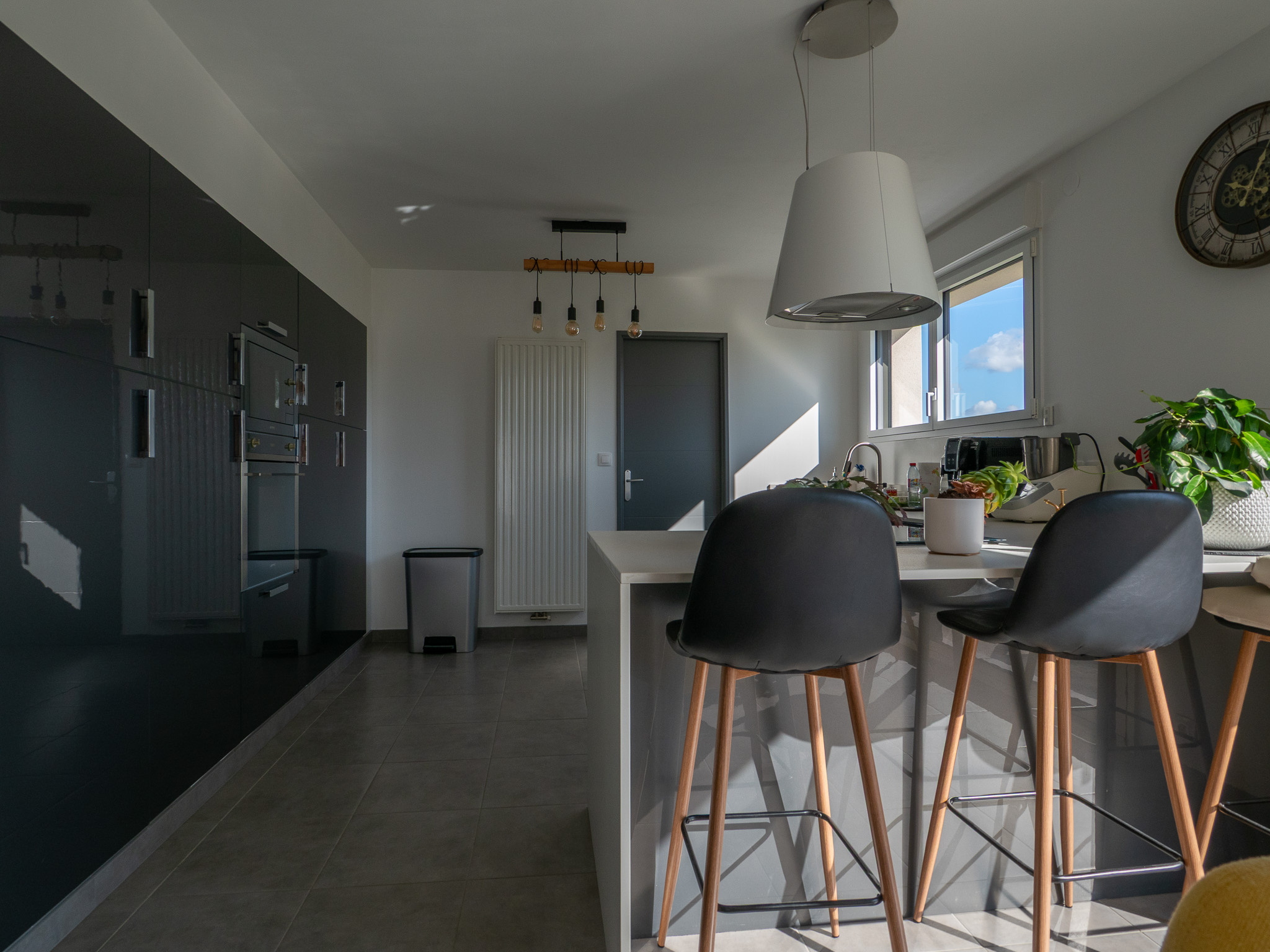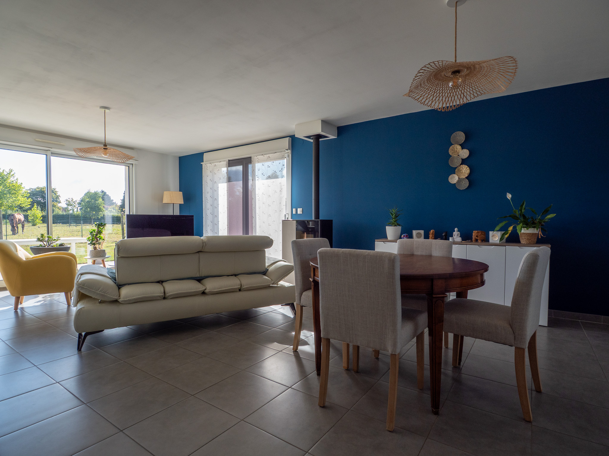 Développant 144 m2 habitables sur une parcelle de 505 m2, elle offre au rez-de-chaussée un hall d'entrée, un espace salon / salle à manger chaleureux équipé d'un poêle à pellets, ouvert sur une cuisine équipée conviviale et fonctionnelle. Une buanderie vient compléter ce niveau.