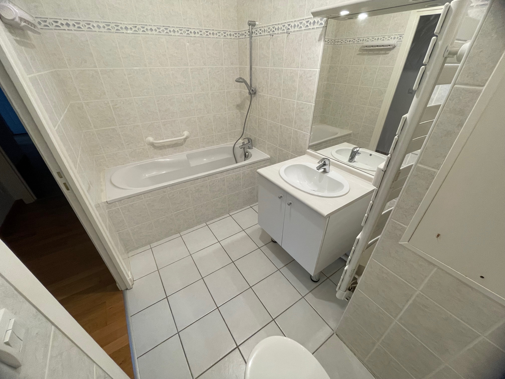 Entrée avec placard, salon/séjour (51 m2), cuisine aménagée, w.c. avec lave-mains, 3 chambres, salle d'eau (douche, lavabo, bidet), salle de bains (baignoire, lavabo, w.c.)