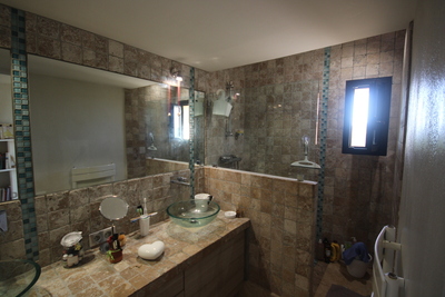 Enfin, au dernier niveau, se déploie une vaste suite parentale avec son dressing, sa salle de bain équipée d'une douche et d'une baignoire, ainsi que des toilettes indépendantes. Un véritable cocon, intime et raffiné avec vue sur le vignoble et un aperçu mer.