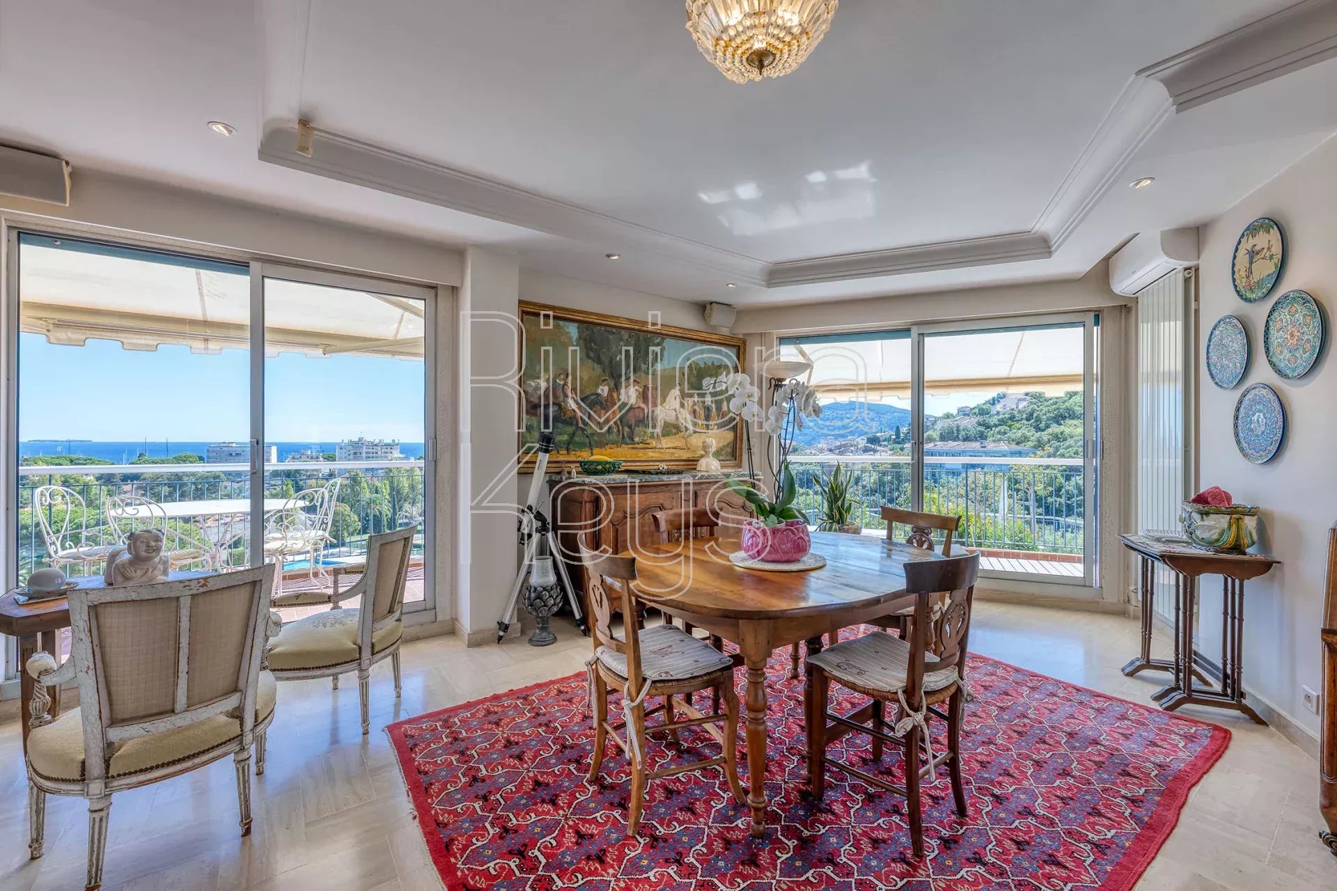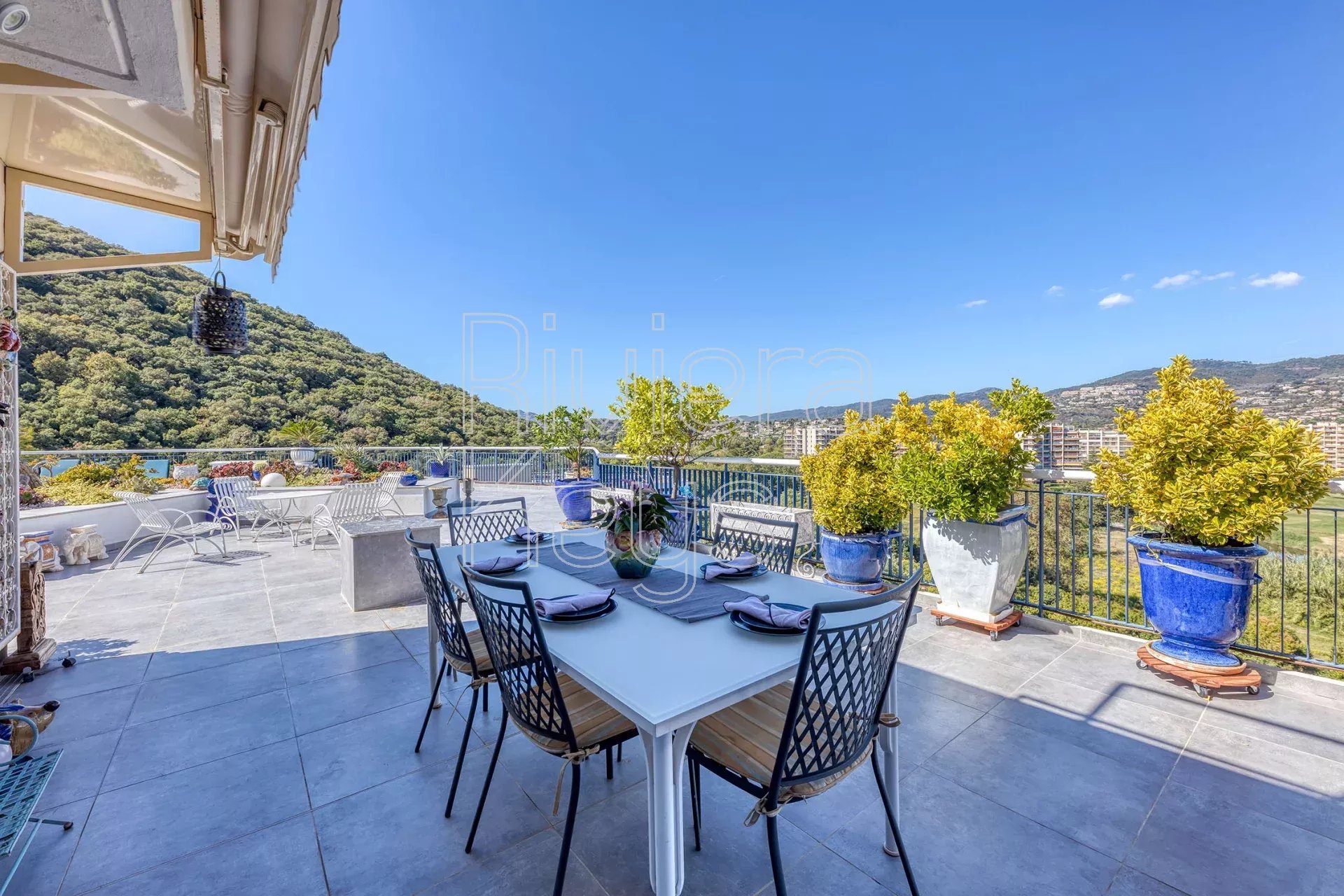 Ce superbe appartement de 122 m² au dernier étage bénéficie d’une terrasse de 160 m² offrant une vue panoramique sur la mer et sur le San Peyre.?Il se compose d’un vaste séjour lumineux avec salle à manger et cuisine équipée, d’une suite parentale avec dressing et salle de bain, d’une seconde chambre, d’un bureau et d’une deuxième salle de bain. Toutes les pièces ouvrent sur le balcon ou la terrasse, inondées de lumière toute la journée.