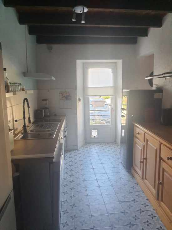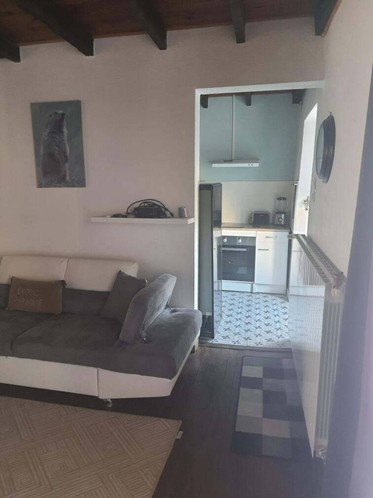 Située dans un environnement calme, cette maison mitoyenne par deux pans en pierre apparente, d'une superficie de 45m2, offre un cadre chaleureux et authentique.