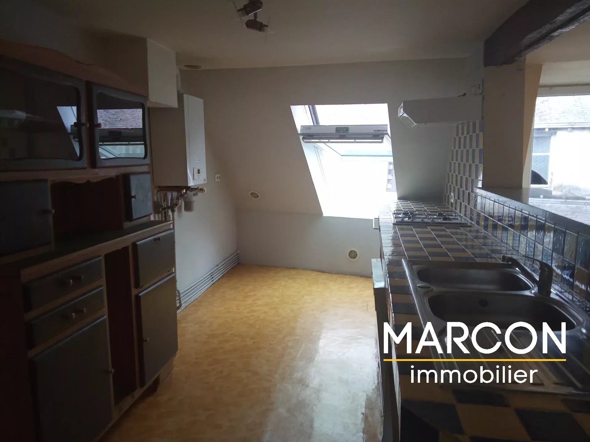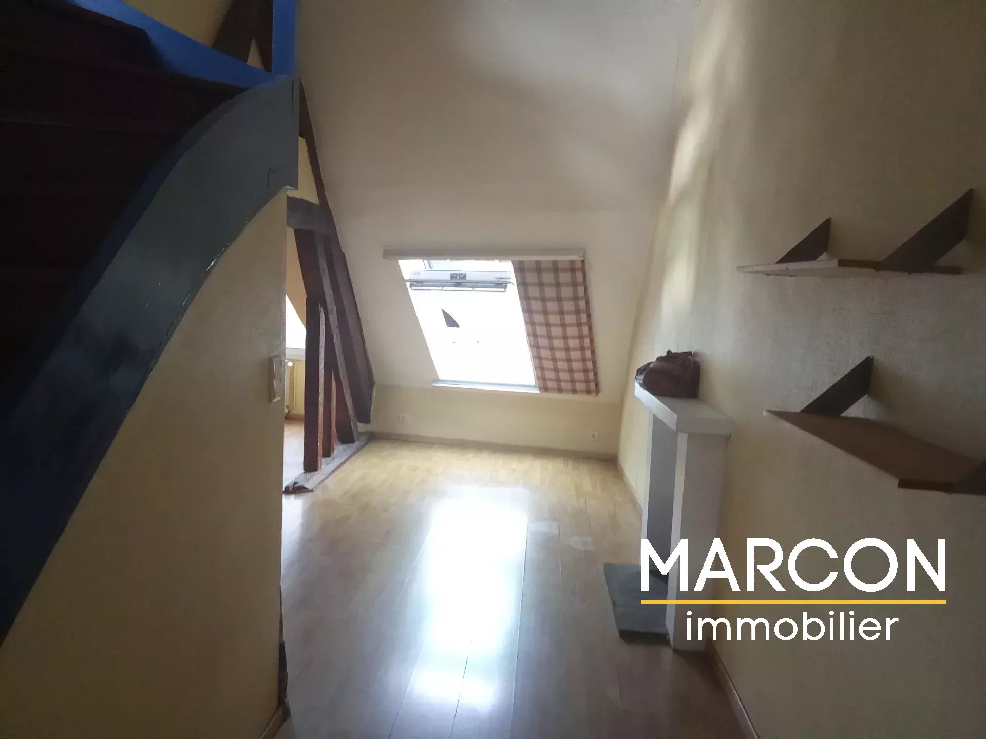 Réf 89119.GUERET CENTRE. Votre agence MARCON immobilier vous propose cet appartement F2 en duplex de 65 m² environ comprenant : entrée, cuisine équipée, séjour, salle d'eau et WC. En duplex, deux pièces mansardées en enfilade.