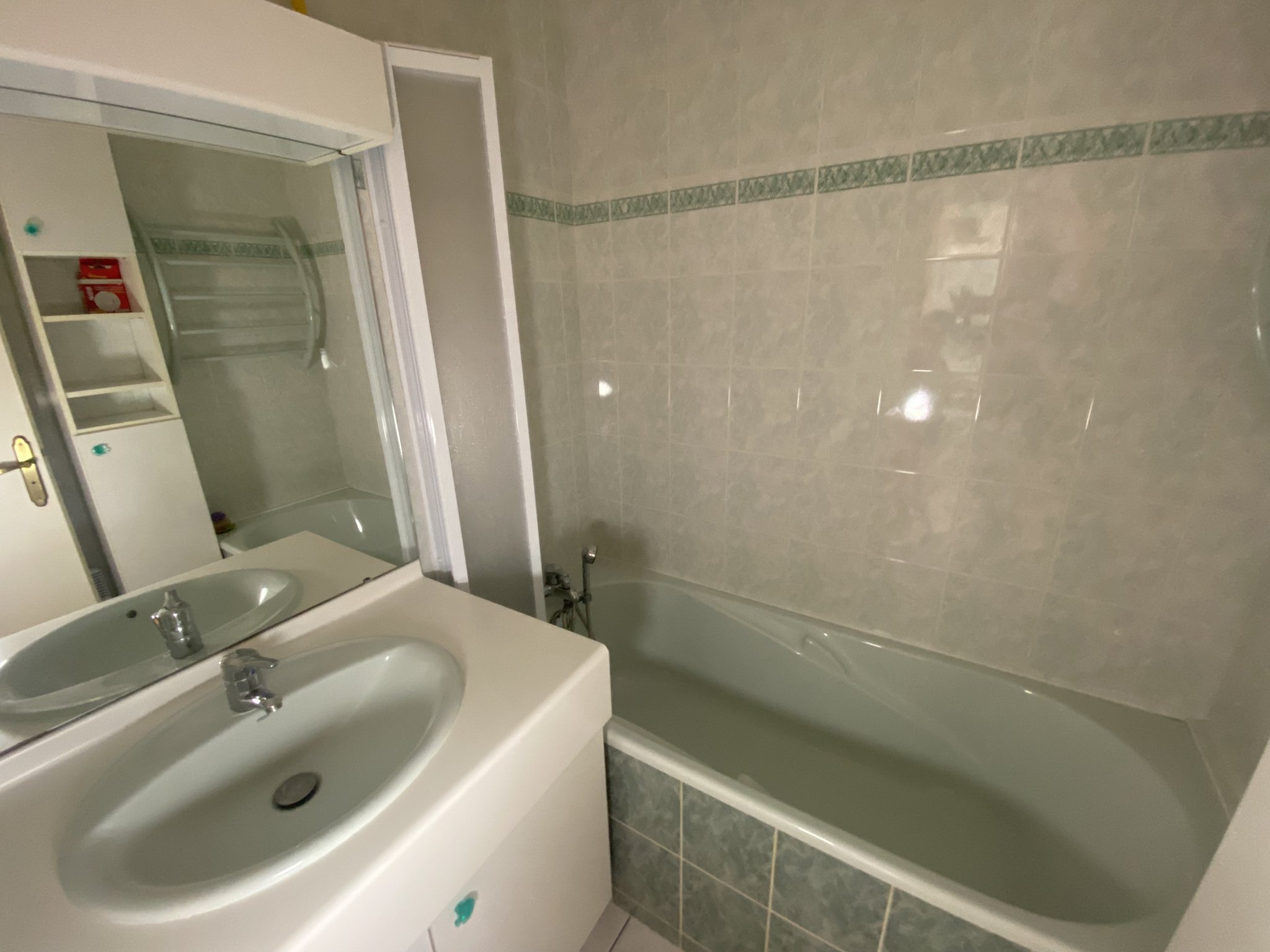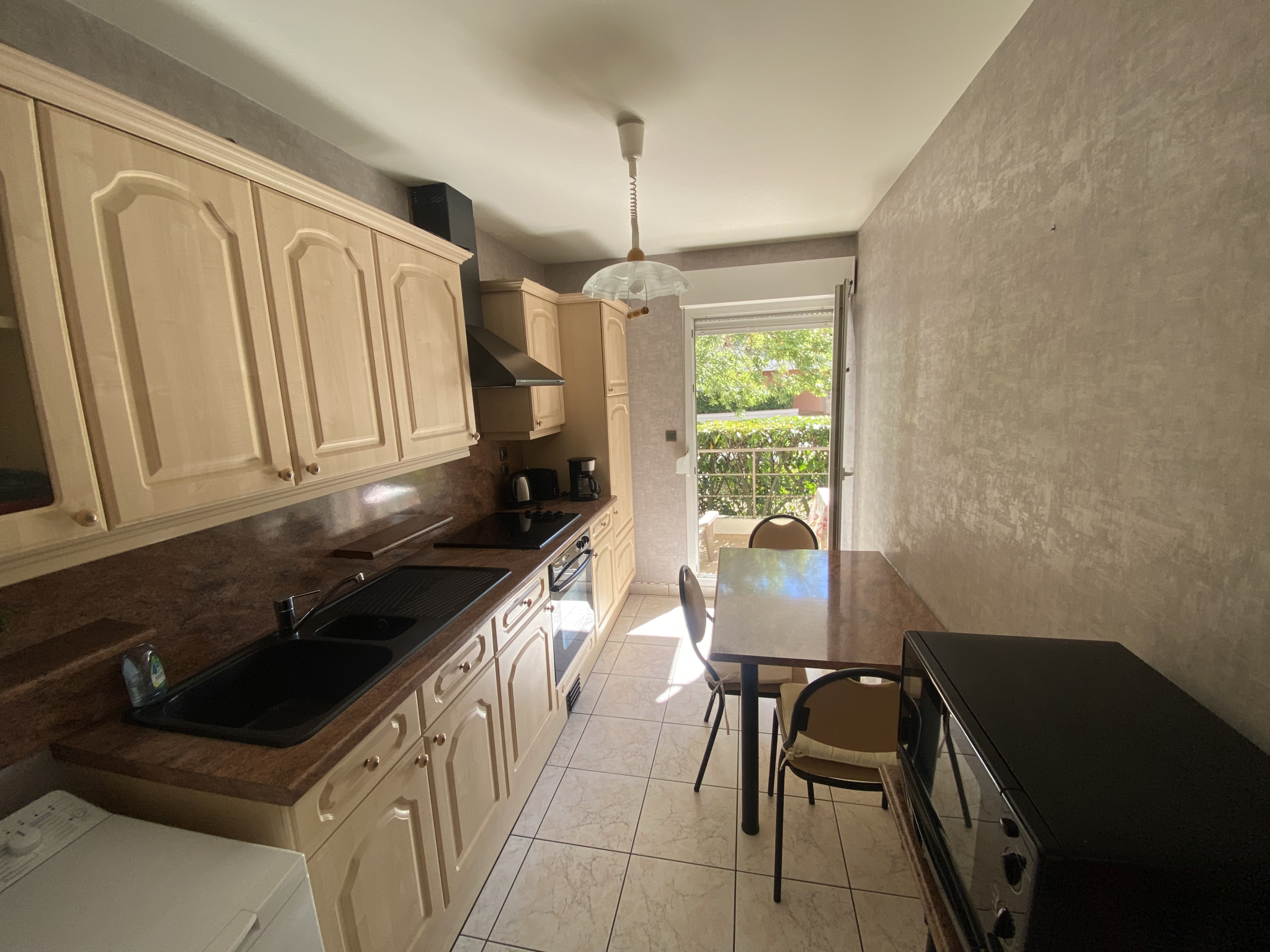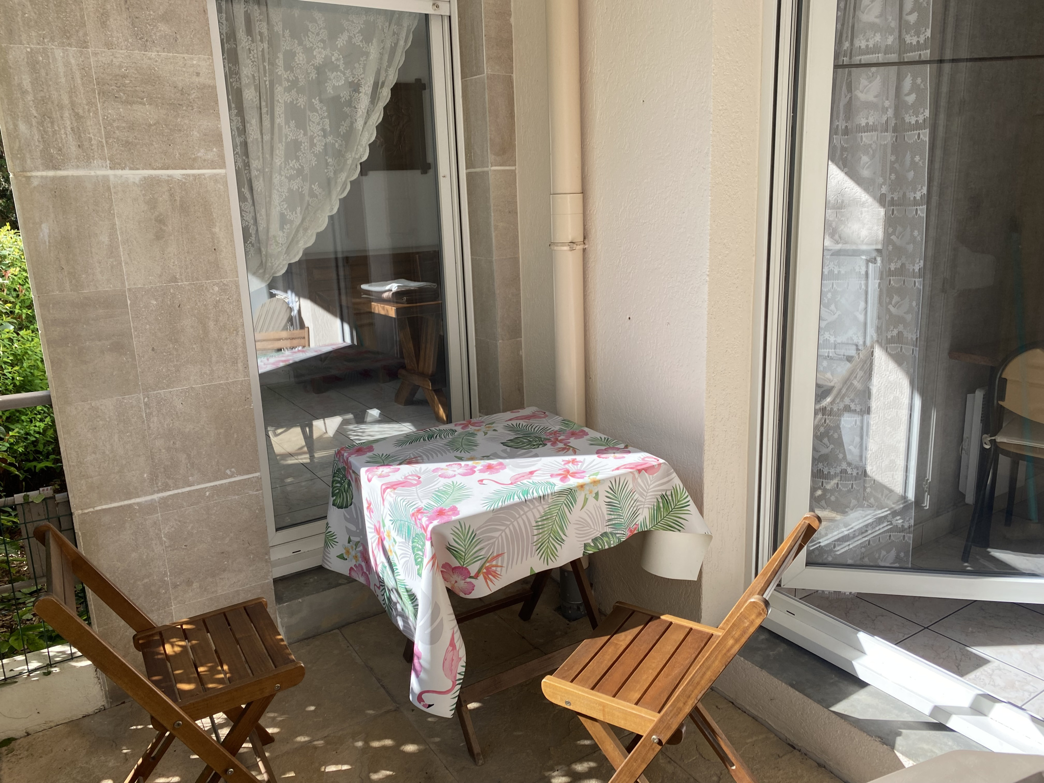 Dans résidence avec Piscine (3 bracelets), appartement de type 2 comprenant entrée, cuisine équipée sur balcon terrasse, pièce à vivre, une chambre, salle de bains et WC séparés. Cave en sous-sol.
