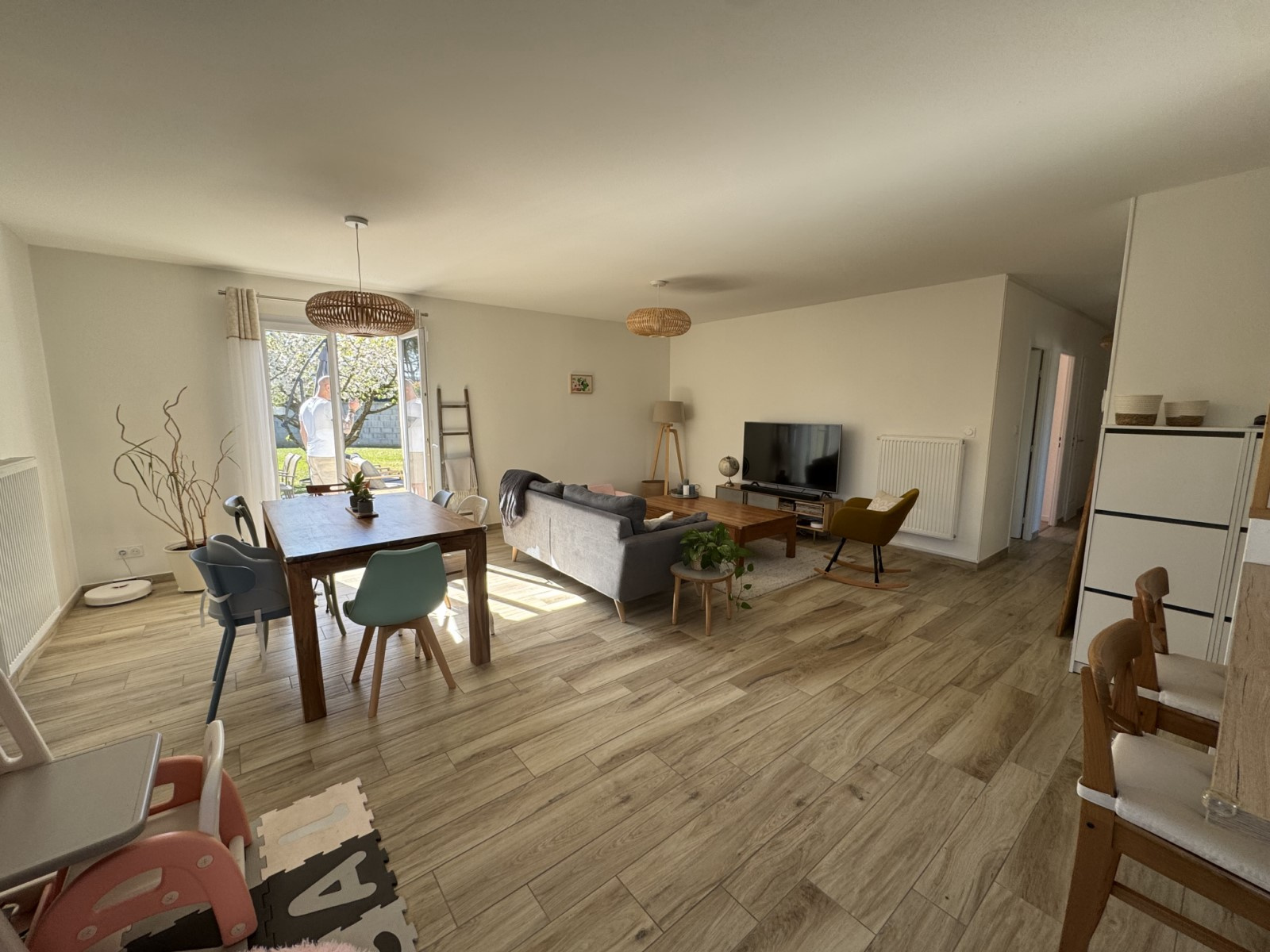 Un espace de vie lumineux et convivial Grande pièce de vie avec cuisine équipée ouverte sur salon-séjour, idéale pour recevoir.