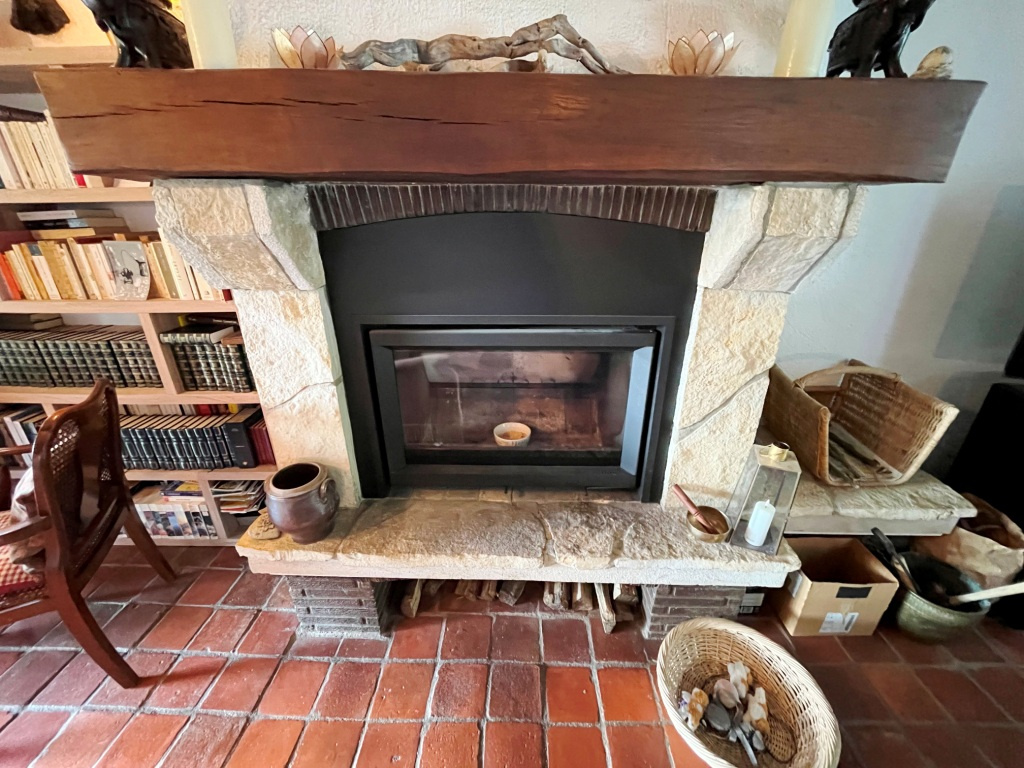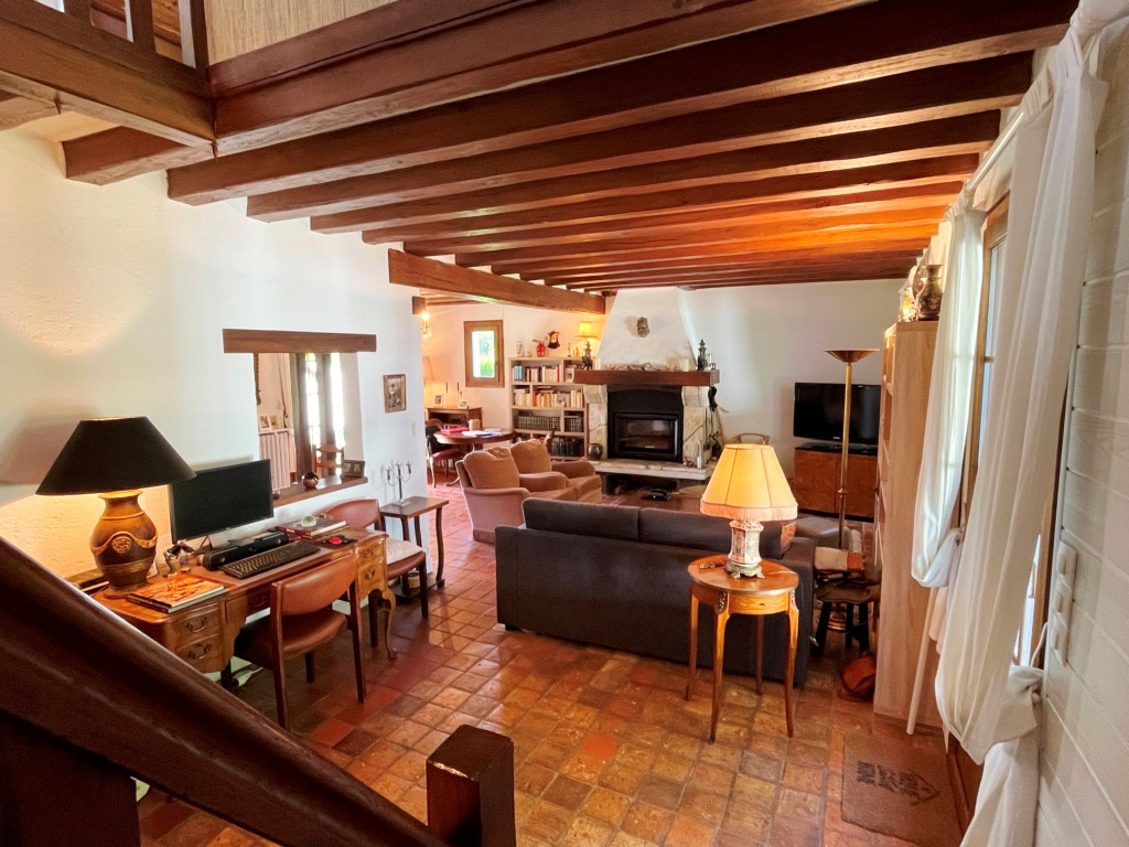 Construite en 1980 avec des matériaux de qualité, la maison séduit par son sol en tomettes anciennes et carreaux de terre cuite, ainsi que par ses belles poutres apparentes qui lui confèrent un charme intemporel.