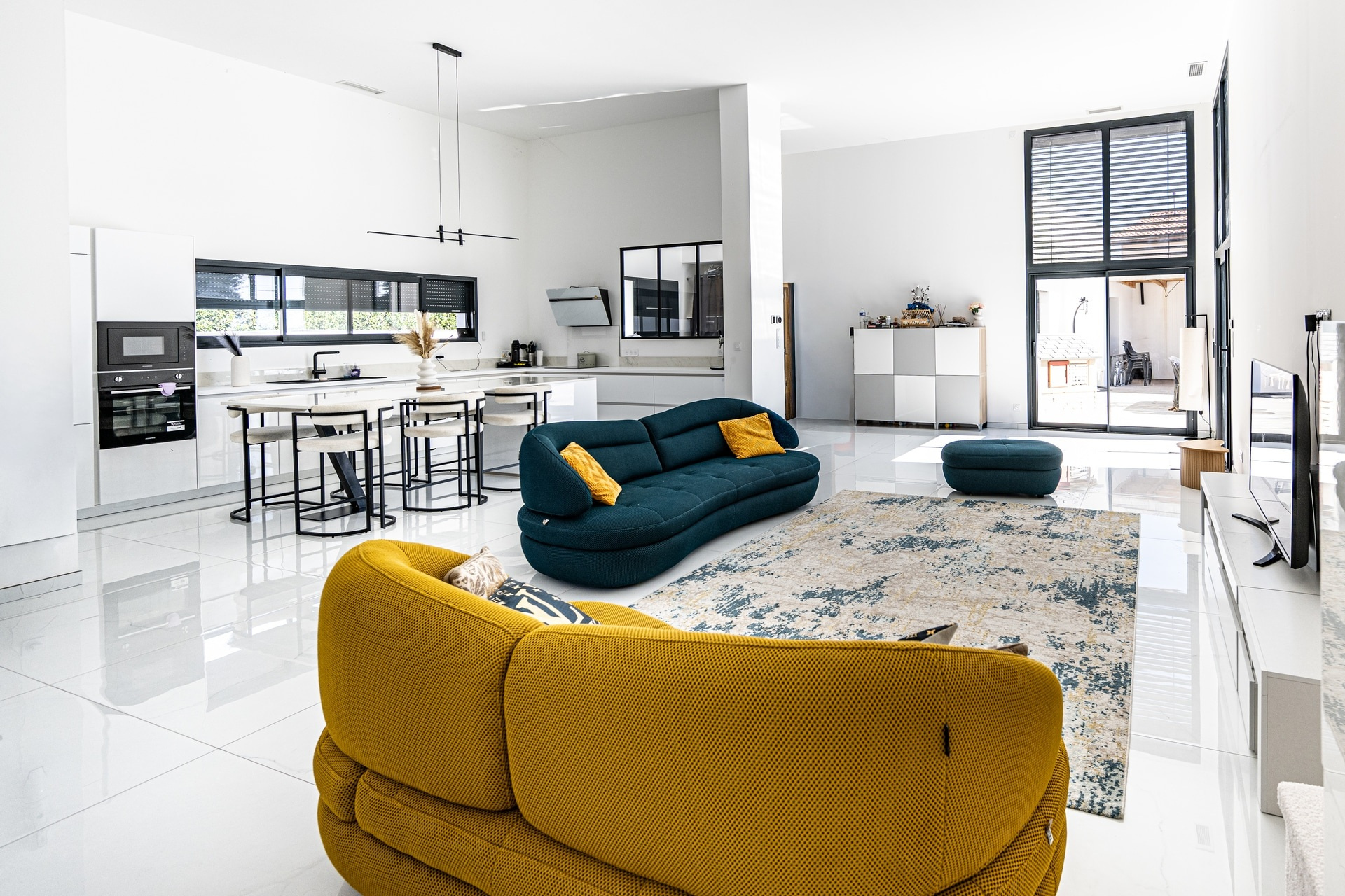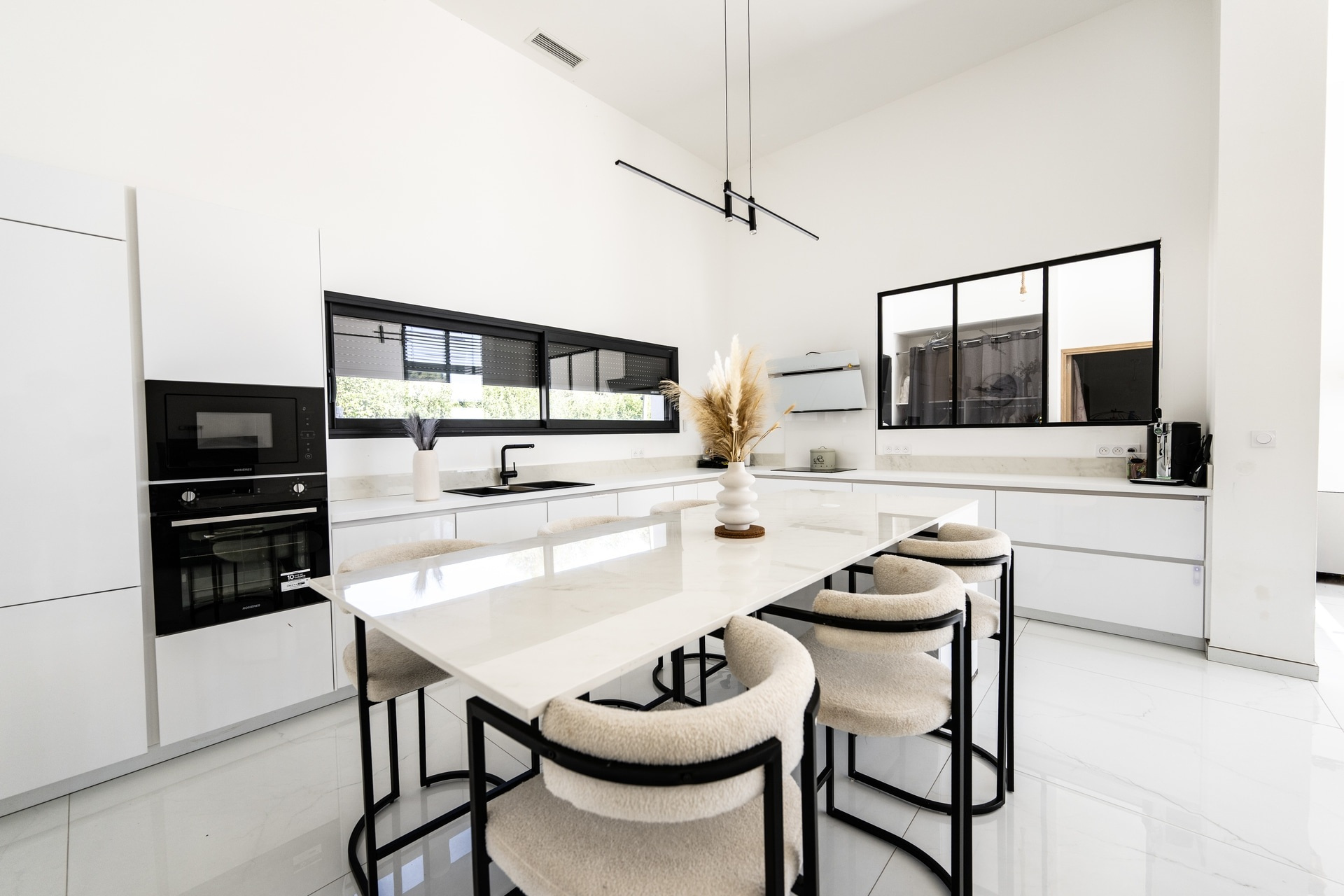 La pièce à vivre de 78 m2 est très lumineuse, et sa cuisine ouverte est parfaitement agencée.