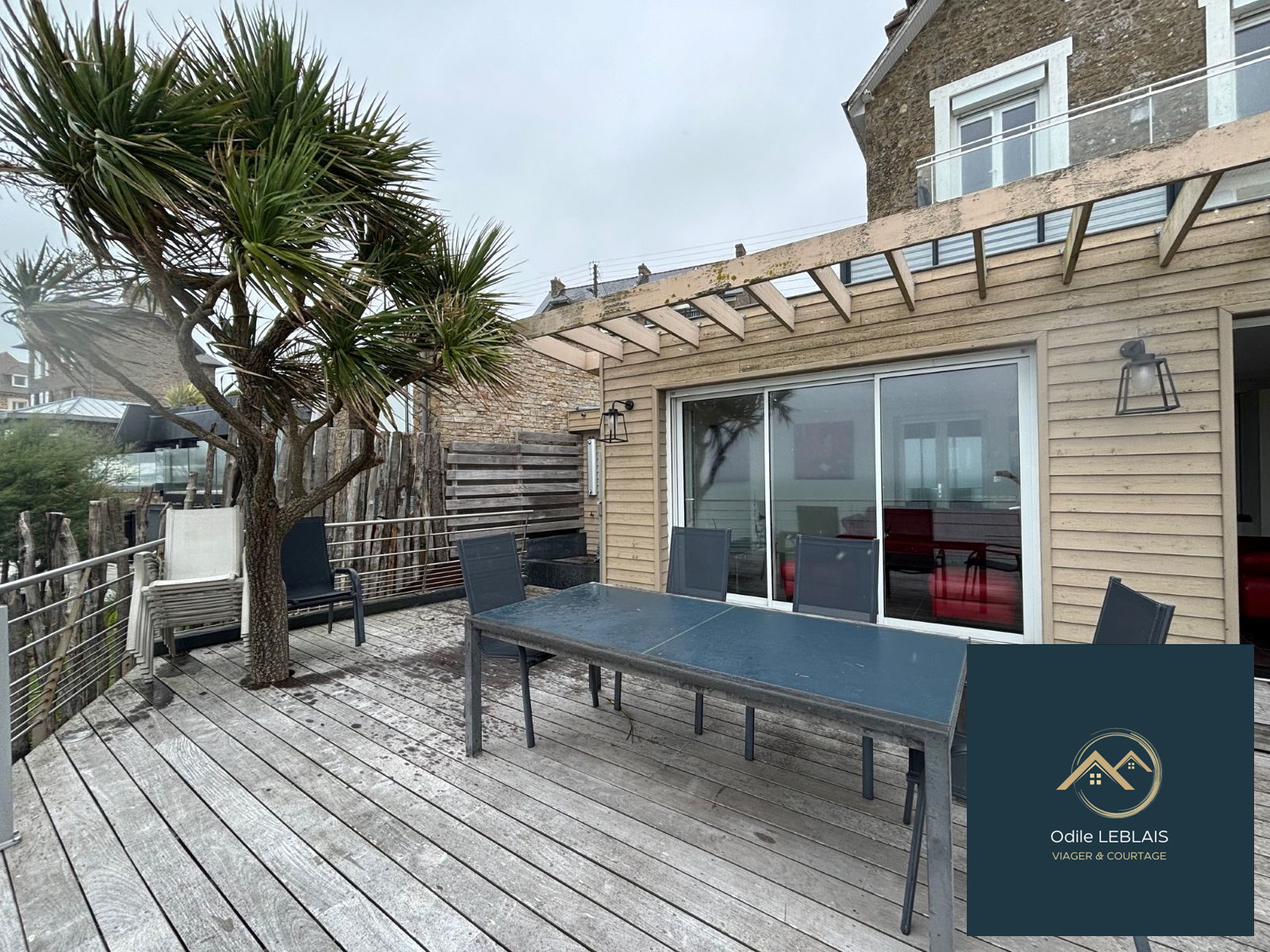 A Saint-Malo, dans le secteur recherché de Rotheneuf-Le Pont, construction à usage d'habitation de 73 m2 avec toit en terrasse comprenant : cuisine, séjour salon face mer, un bureau, deux chambres, une salle d'eau avec WC, un WC. Une terrasse de 54 m2 complète ce bien. Un Cabanon. Un jardin avec escalier privatif pour accéder à la plage.