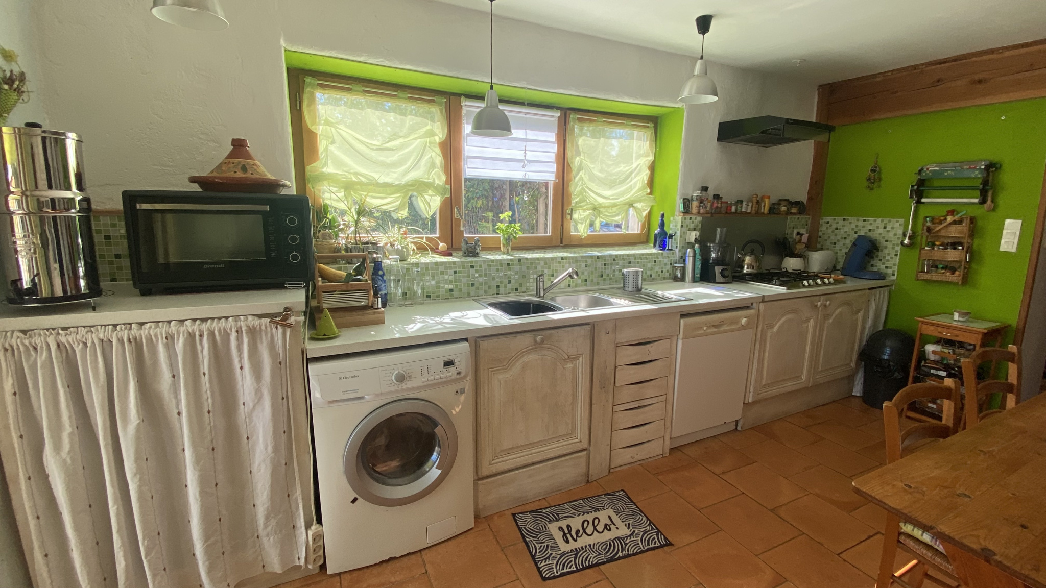 La maison entièrement rénovée(isolation paille, menuiseries bois, parquet et enduits à la chaux) se compose au rez de chaussée d'un séjour lumineux avec une grande cuisine ouverte sur la terrasse, d'une chambre avec salle d'eau, à l'étage 3 belles chambres et une salle de bain