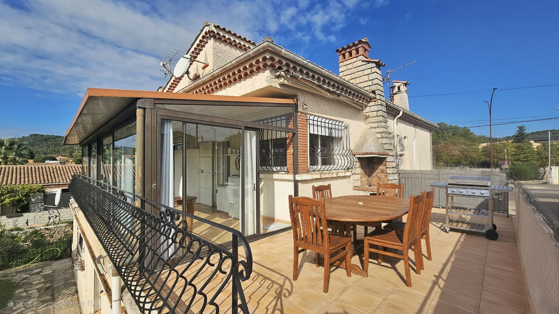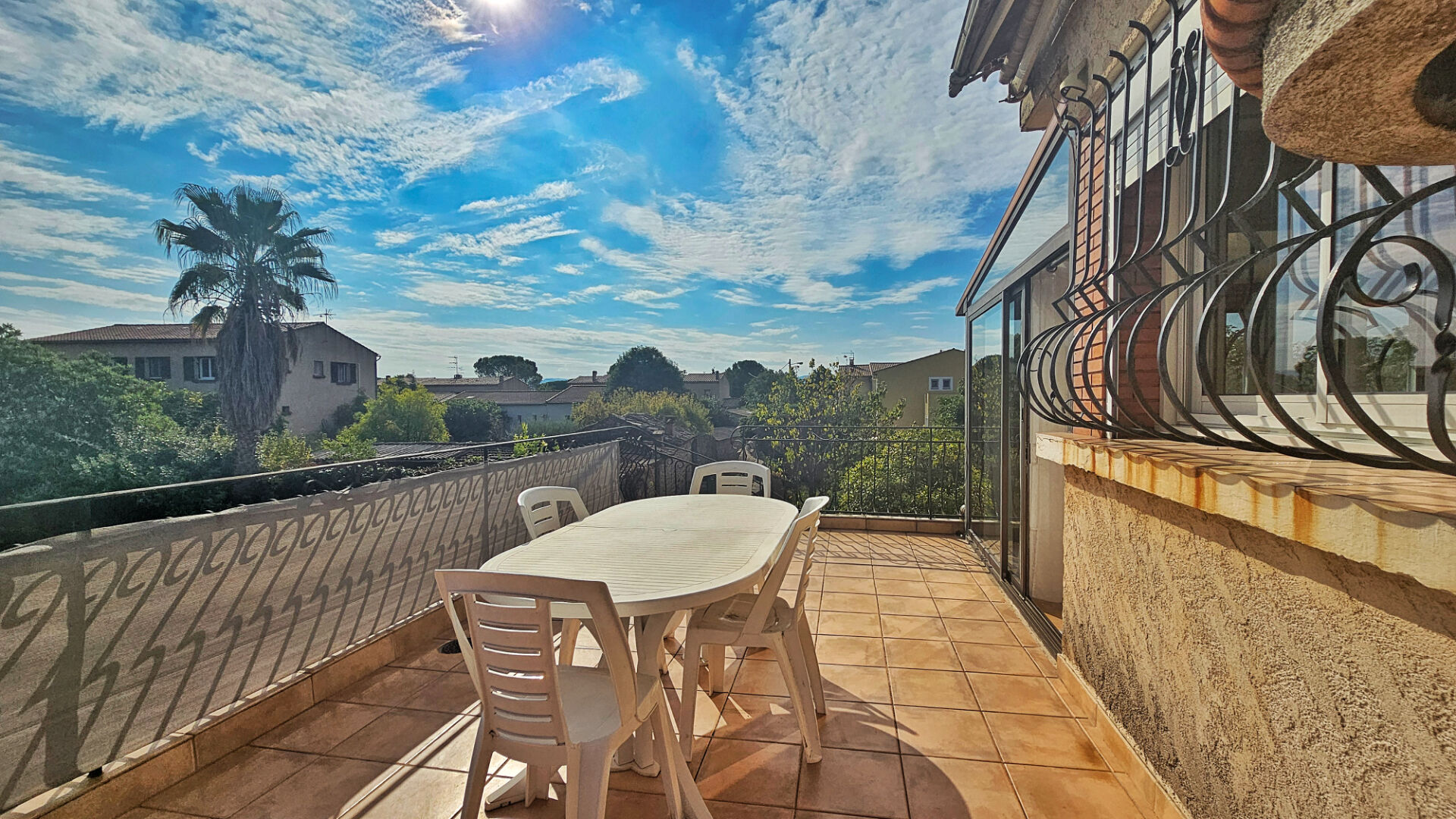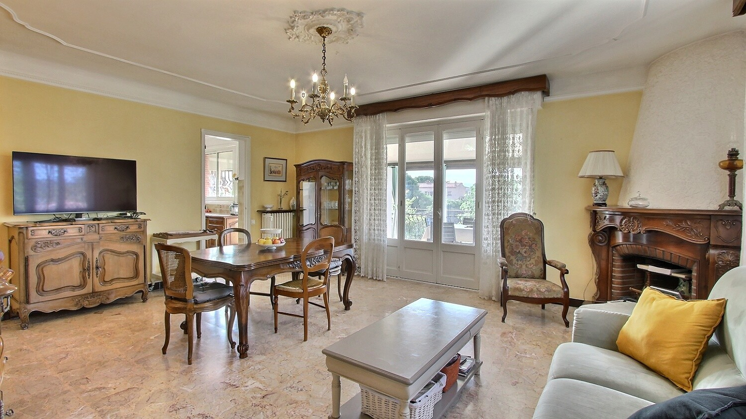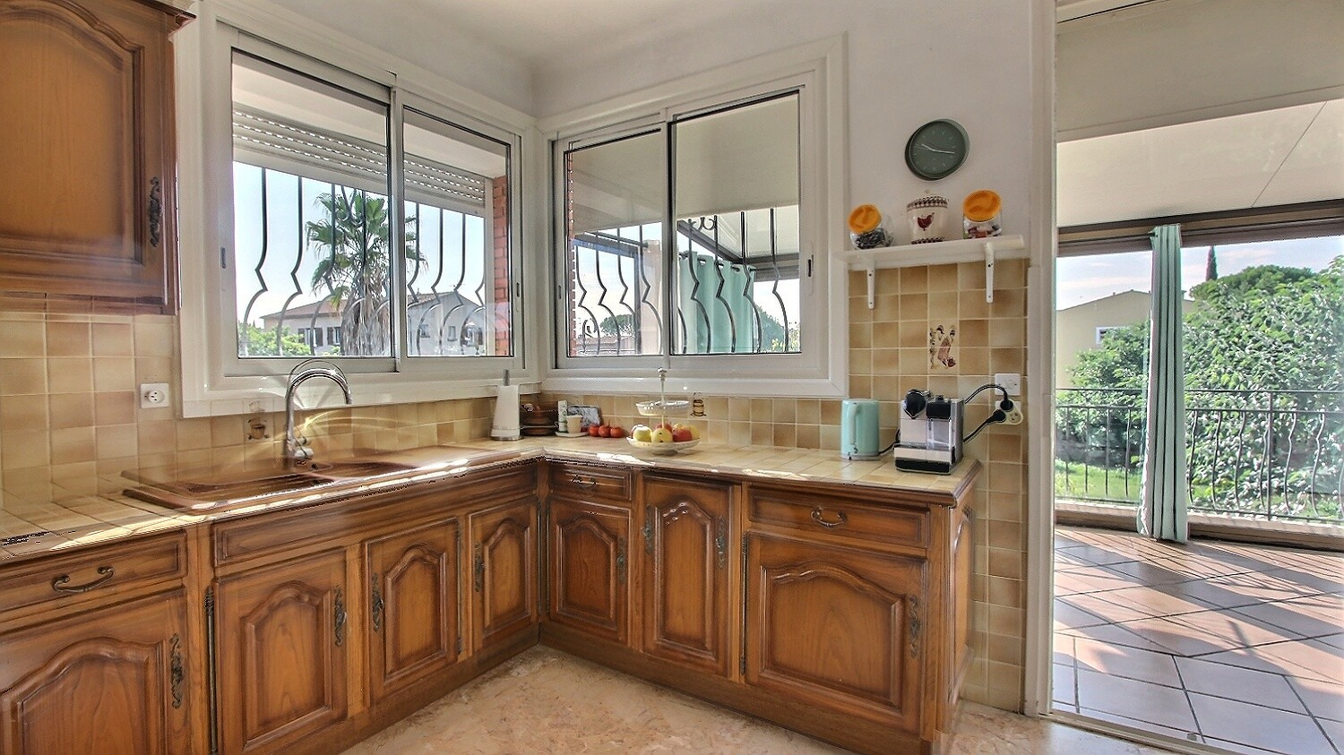 Au rez-de-chaussée, vous découvrirez un appartement lumineux de type T4, climatisé, comprenant, une cuisine séparée équipée et un séjour, tous deux donnant sur une véranda de 23 m² et la terrasse, trois chambres de 11 à 13 m², une salle d'eau et un WC séparé.