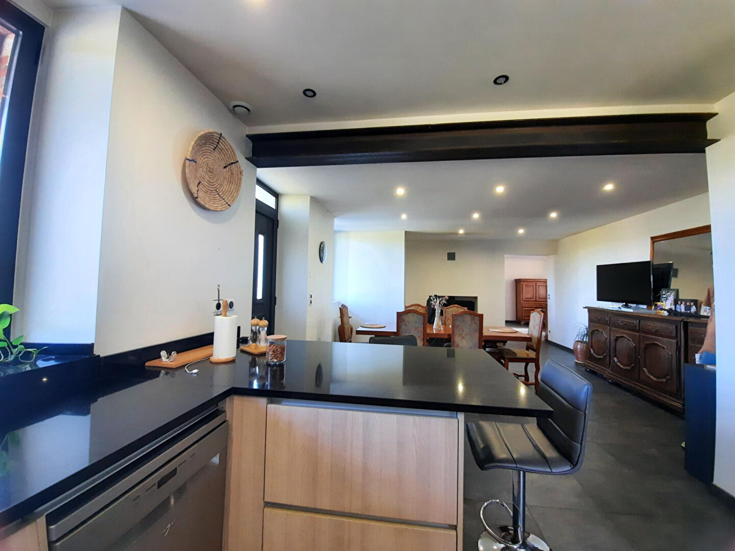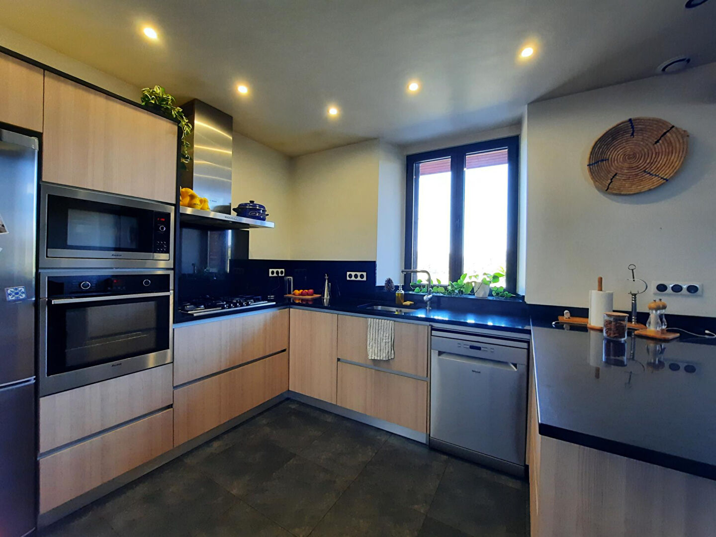 Maison avec de très beaux volumes, Le rez de chaussée s'organise autour d'une belle pièce de vie de 87 m² avec cuisine moderne équipée, ouverte sur salle à manger, salon, donnant sur terrasse couverte pour vous permettre de profiter au maximum de l'extérieur; parfait pour les moments de détente. Double vitrage Alu avec persiennes et menuiseries neuves.