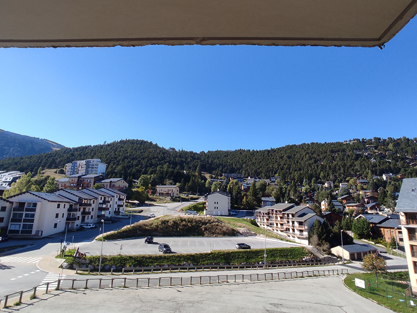 APPARTEMENT composé d'un grand séjour clair et lamineux donnant sur un balcon SUD-OUEST avec vue sur les montagnes et les pistes, une cuisine entièrement équipée, une salle d'eau avec WC et une chambre.