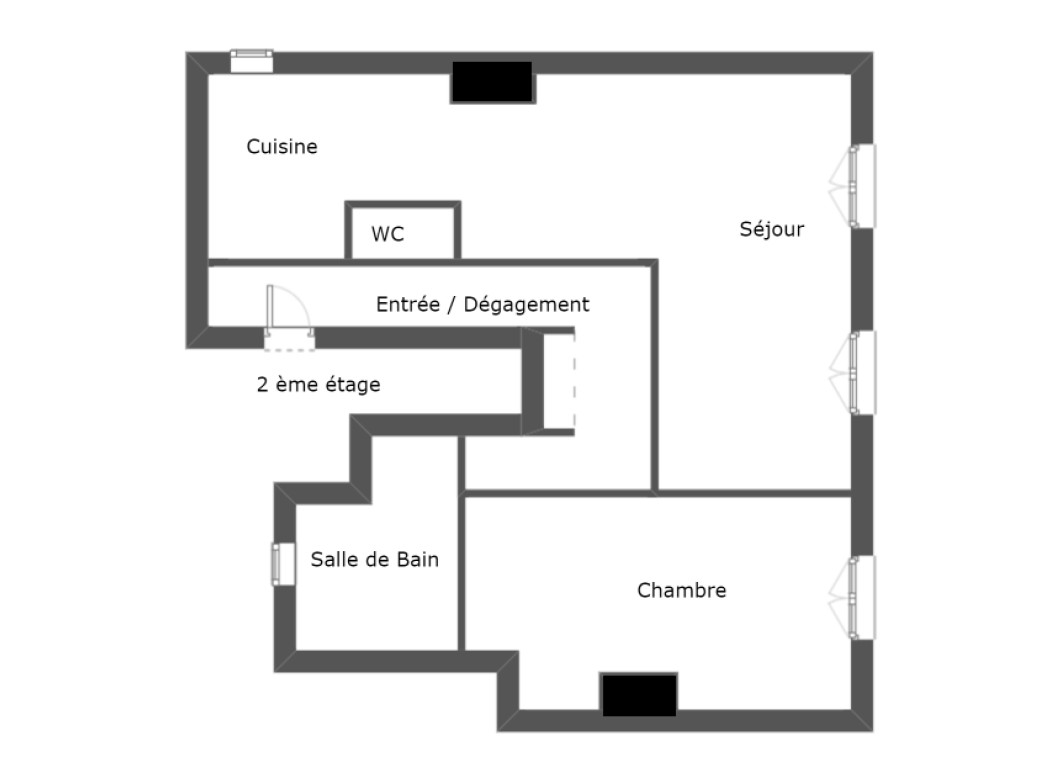 Actuellement configuré en T2, il n'y a qu'une cloison à rajouter pour le remettre en T3.