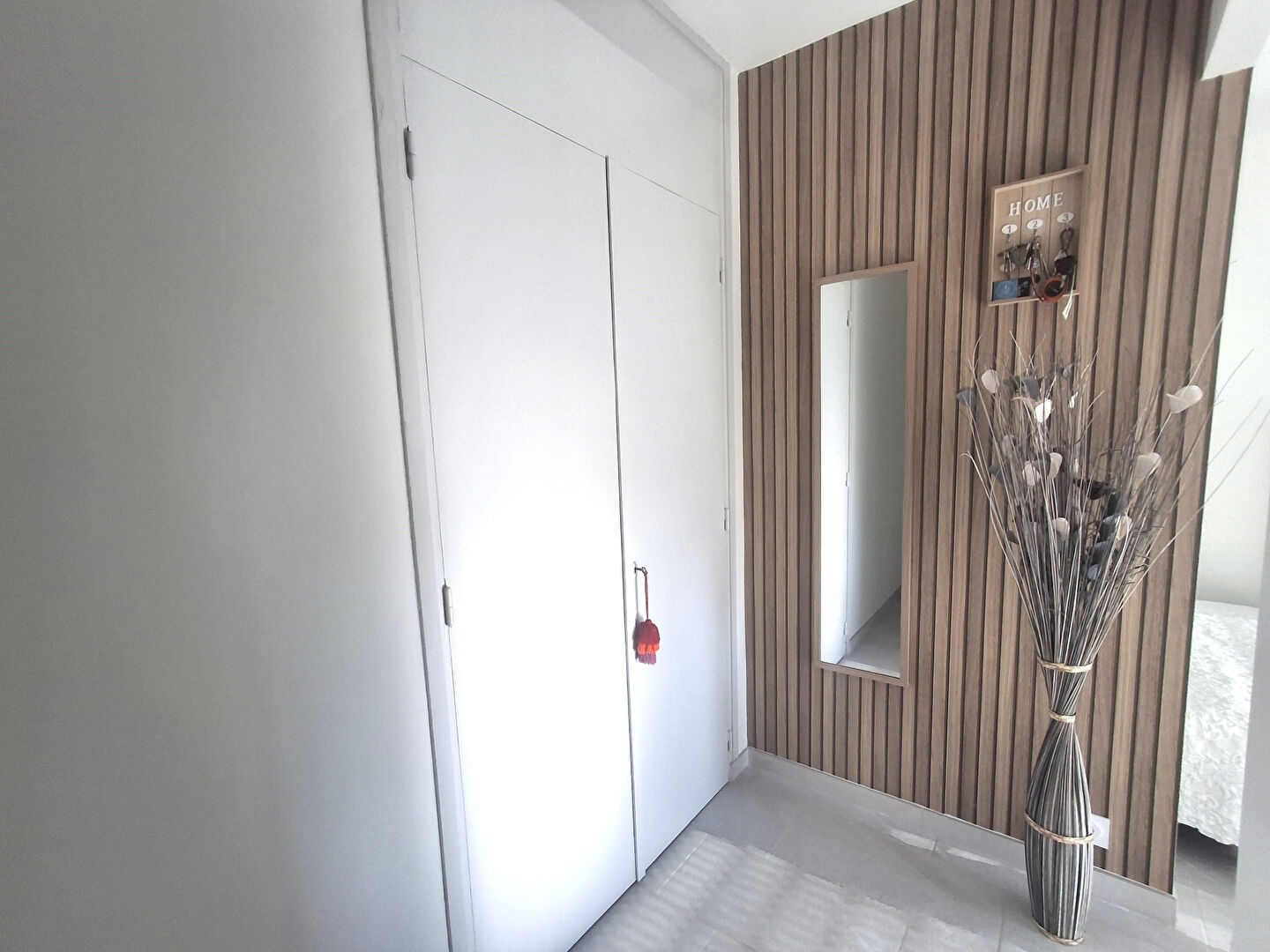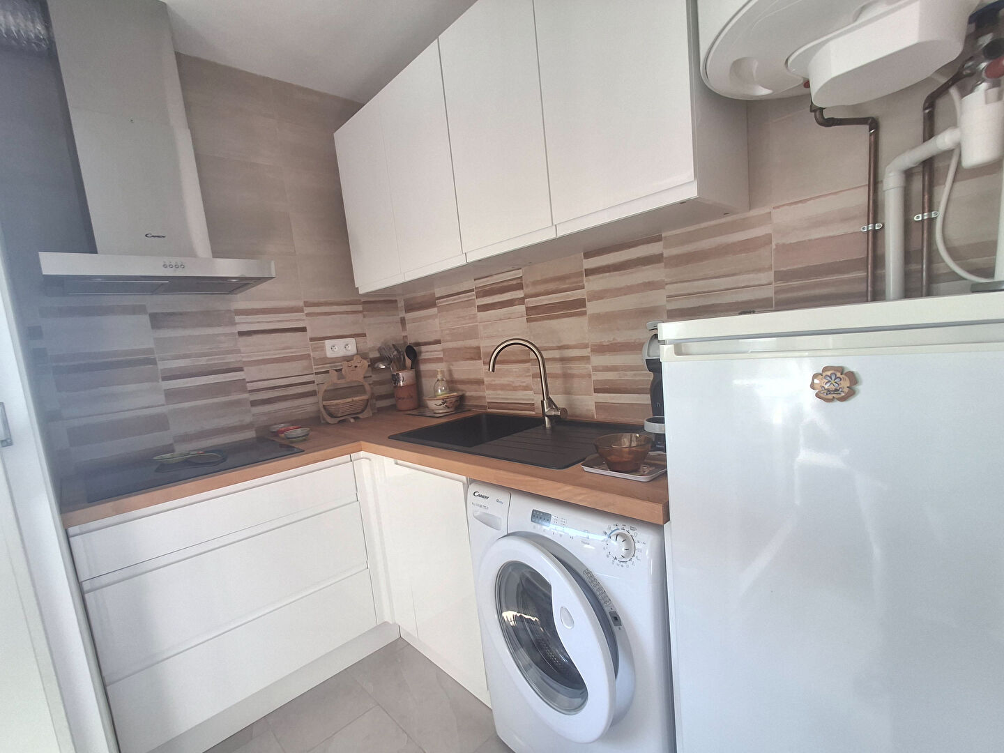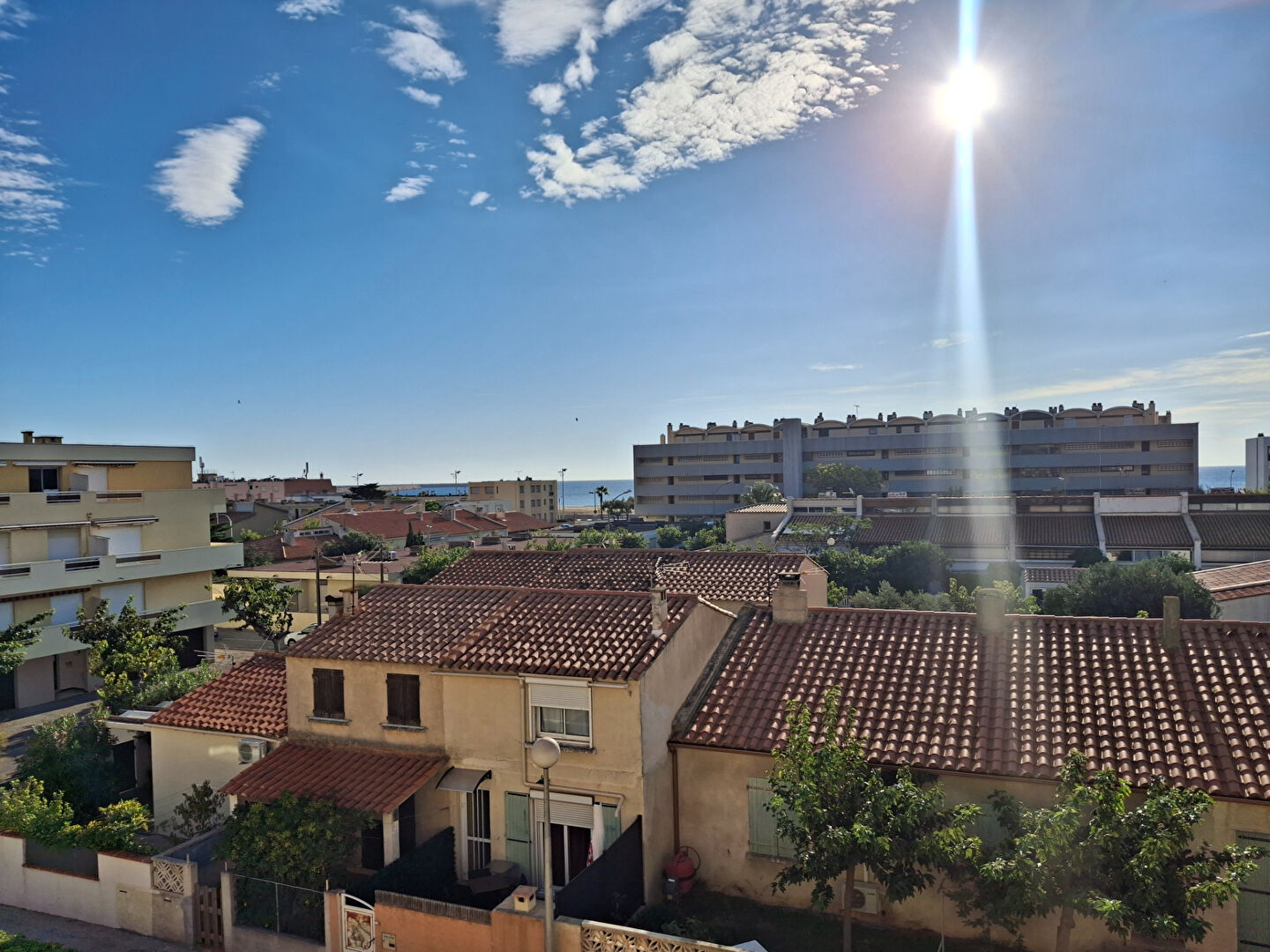 PORT LA NOUVELLE. A 100 m de la plage dans résidence sécurisée. Studio cabine, loggia vue mer, vendu meublé. Composé : 1 entrée avec grand palcard , 1 salle d'eau avec wc, 1 séjour avec coin nuit, 1 cuisine indépendante équipée aménagée.