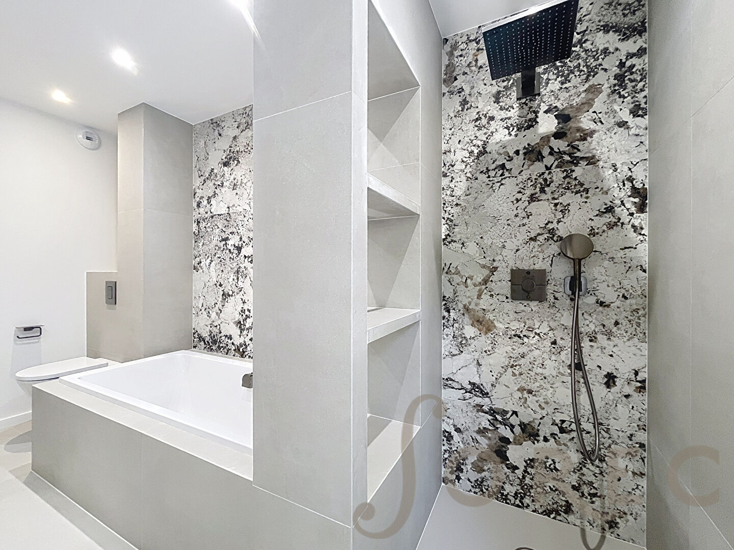 Prestations haut standing : domotique complète (volets, éclairages), matériaux premium, finitions soignées.