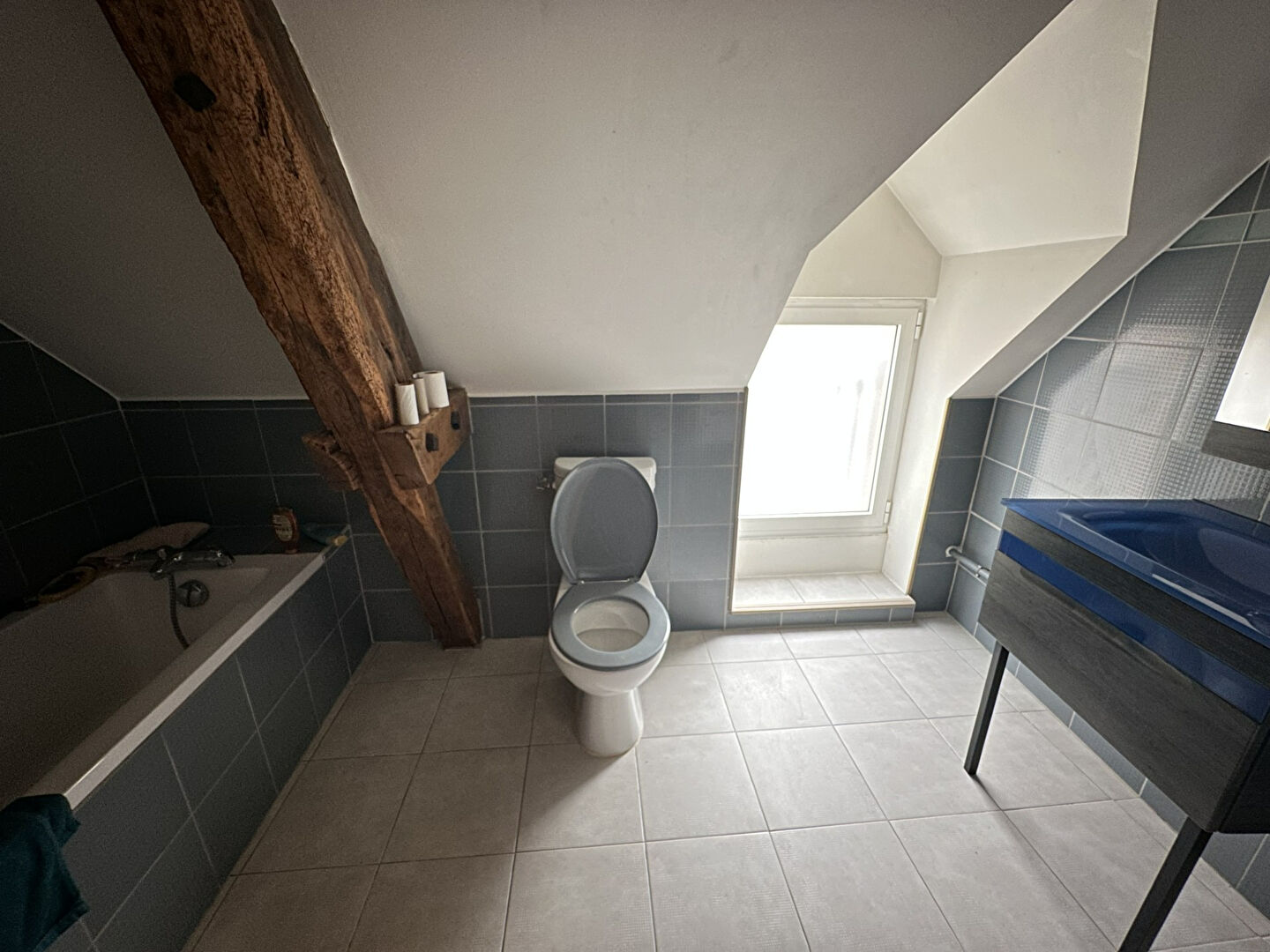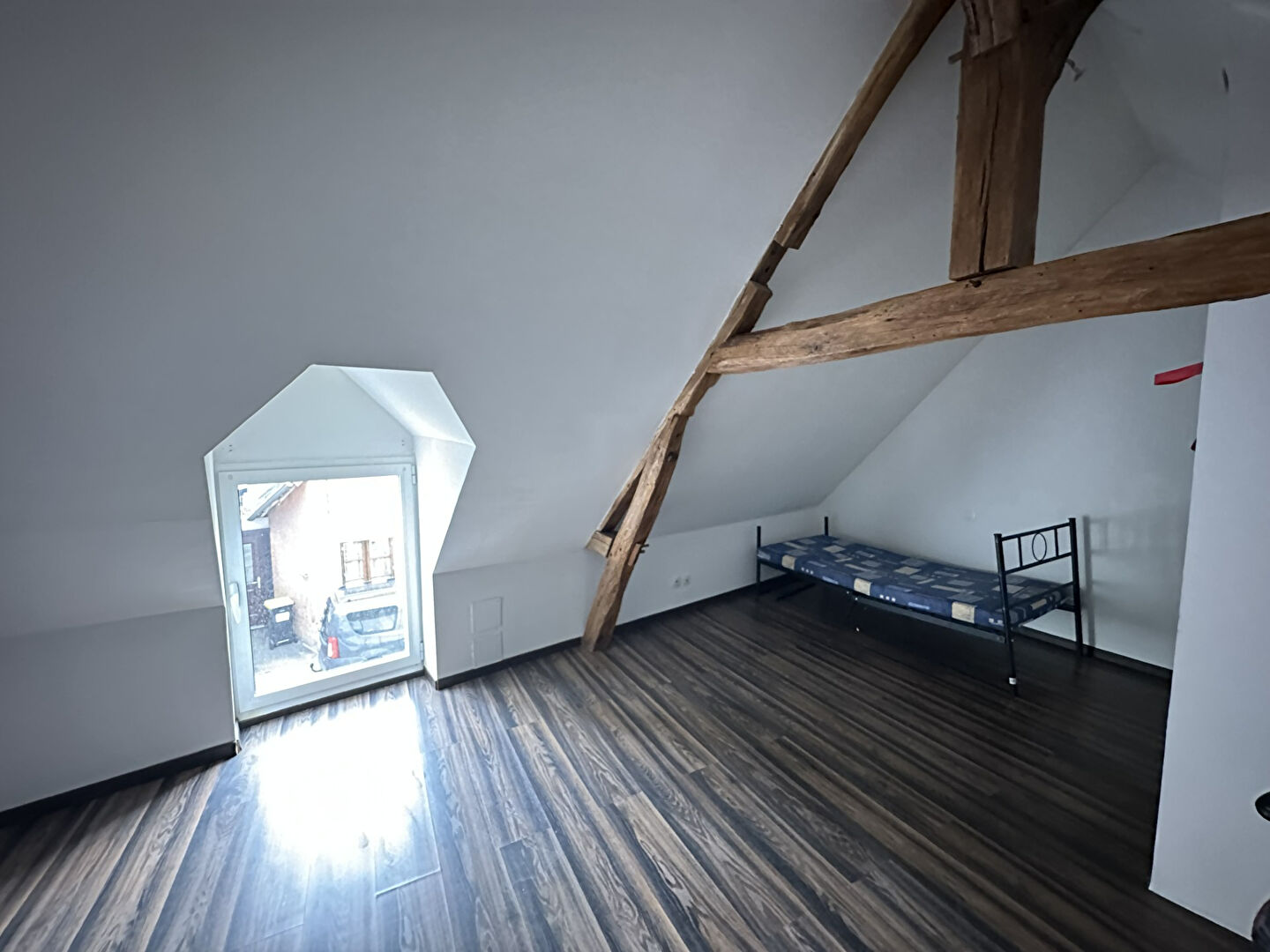 - à l'étage : palier, deux chambres, salle de bains, wc.
