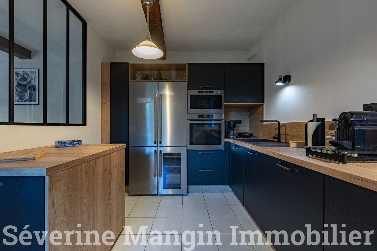 Elle offre, au rez-de-chaussée, une vaste cuisine de 27 m², conviviale, parfaite pour les repas en famille ou entre amis ainsi qu'un salon de 35m².