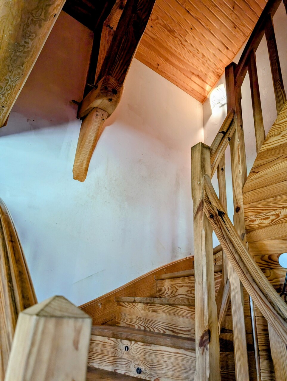 Depuis les jacobines, profitez d’une vue dégagée sur les sucs environnants. La pièce de vie, baignée de lumière, offre une atmosphère chaleureuse et conviviale, à l’esprit campagne.