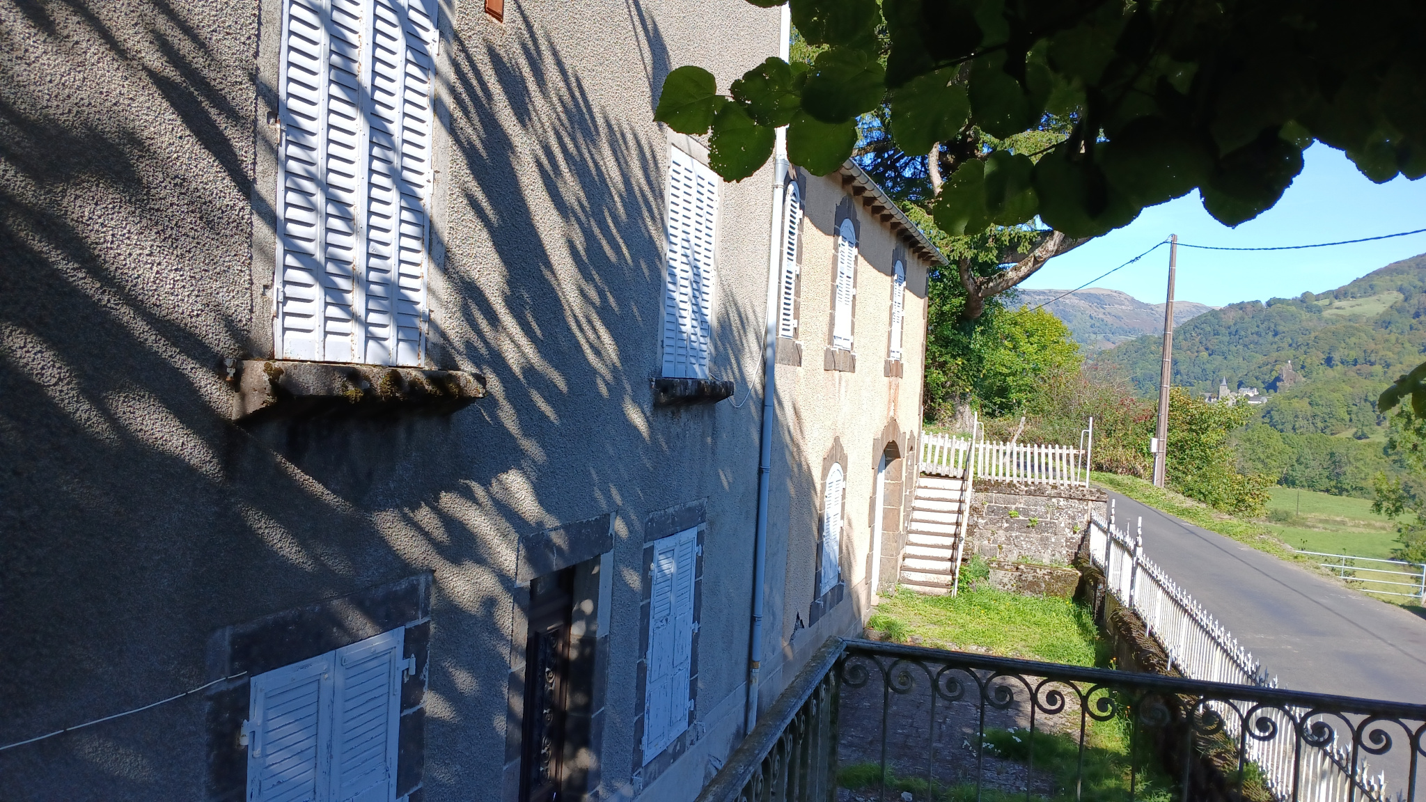 Dans la vallée de la Maronne, grande maison bourgeoise avec ses anciennes écuries,à rénover. En retrait d'une petite route départementale, un terrain de 690m2 autours de la maison et un jardin de 990m2 de l'autre côté de la route.