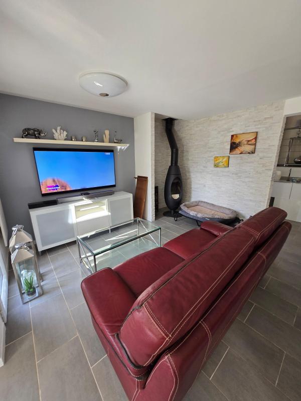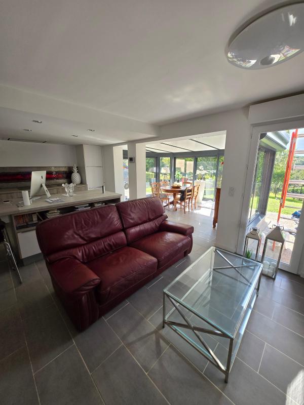 Elle se compose d'un vaste espace de vie lumineux agrémenté d'un poêle à bois, d'un ilot central, d'une cuisine équipée et aménagée ainsi que d'une superbe véranda moderne, idéale pour profiter de chaque saison.