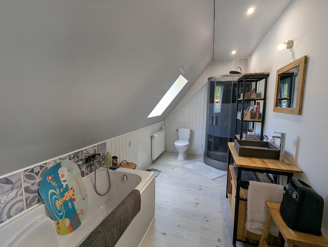 Double Salon-salle à manger avec insert récent, cuisine aménagée et terrasse, buanderie et WC, une suite parentale en RDC avec dressing , salle de bain/douche/WC, salle de jeux.