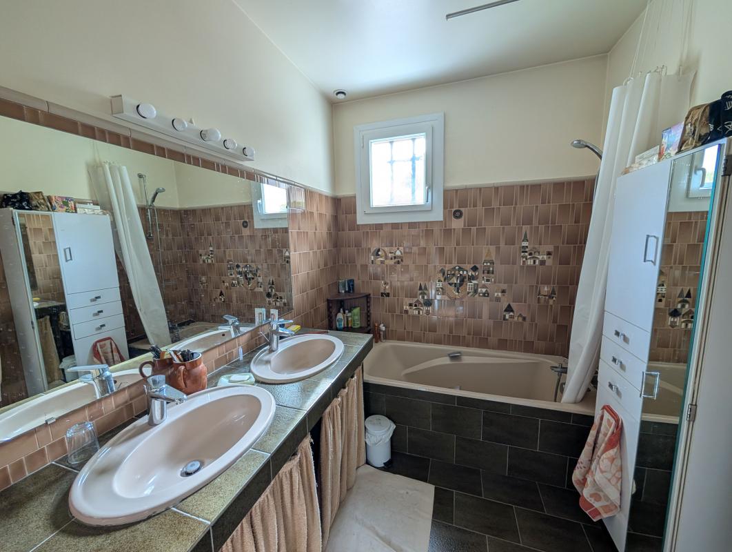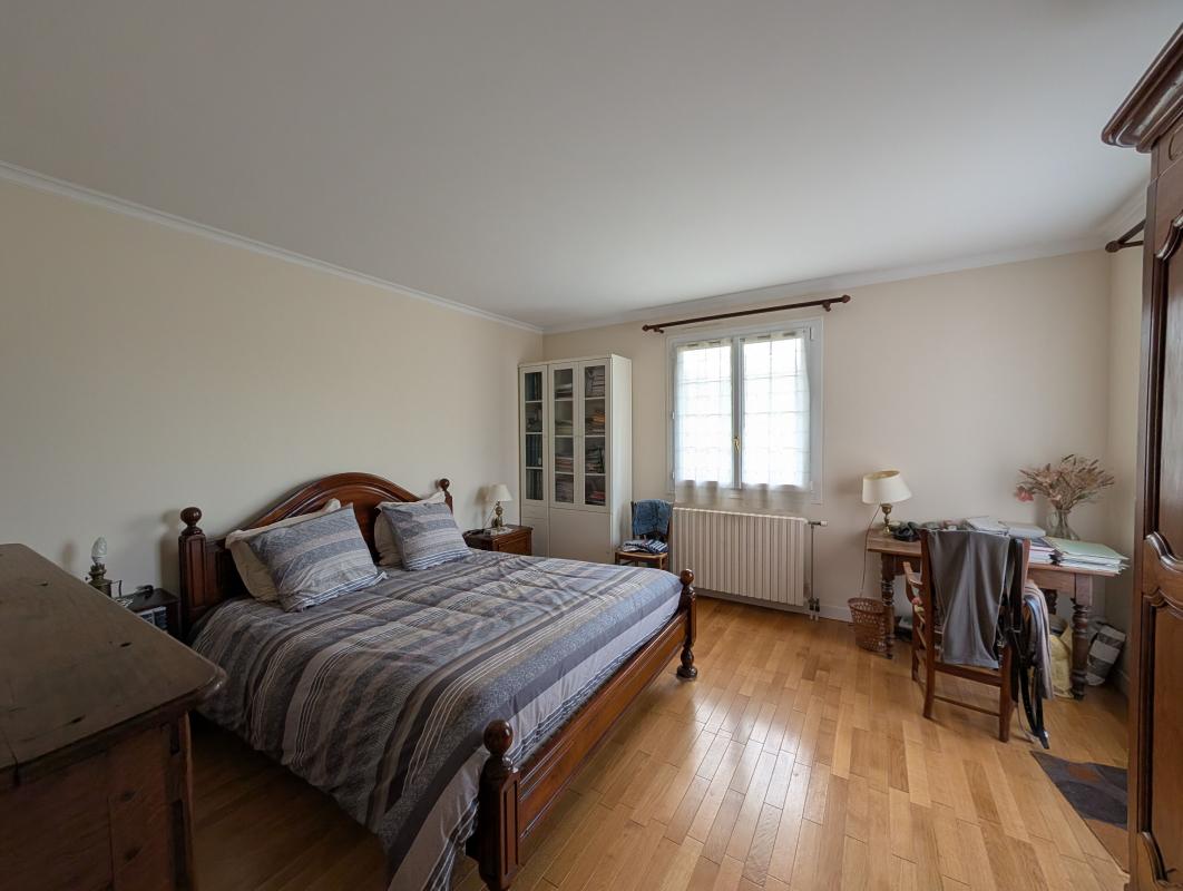 Au rez-de-chaussée, une entrée cathédrale, un séjour et salle à manger avec cheminée et accès sur la terrasse et le jardin, une grande cuisine avec accès jardin, une chambre 18m², une salle de bains et WC. A l'étage, un espace mezzanine avec placards, 4 chambres dont deux avec coin lavabo, une salle de bains et WC. Sous-sol total avec garage, atelier, rangements et cave. Dépendance dans le jardin. Gare RER, commerces et école à pied. Ravalement récent sous garantie décennale.