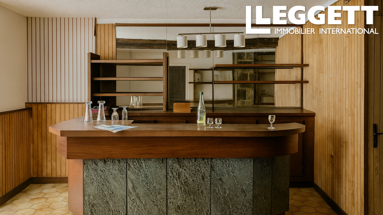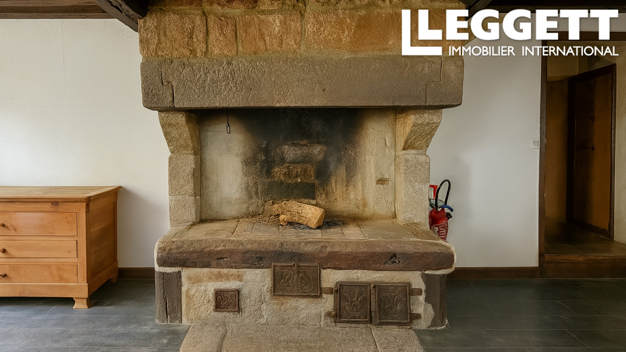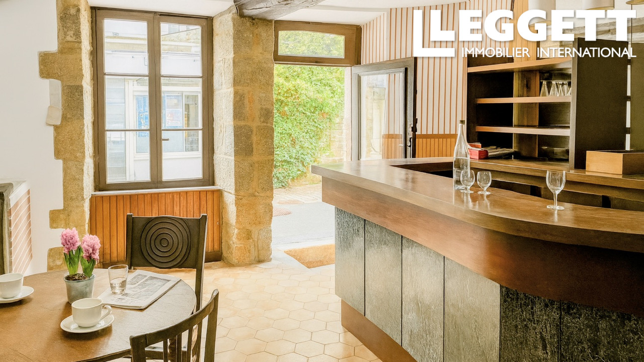 Cette maison de maître en granit de 1810, ancien bar-restaurant, offre 257 m² habitables sur trois niveaux, avec deux magnifiques salles voûtées, une grande salle de réception, un bar, une cour intérieure arborée avec puits, une terrasse côté rue et deux caves en pierre.
