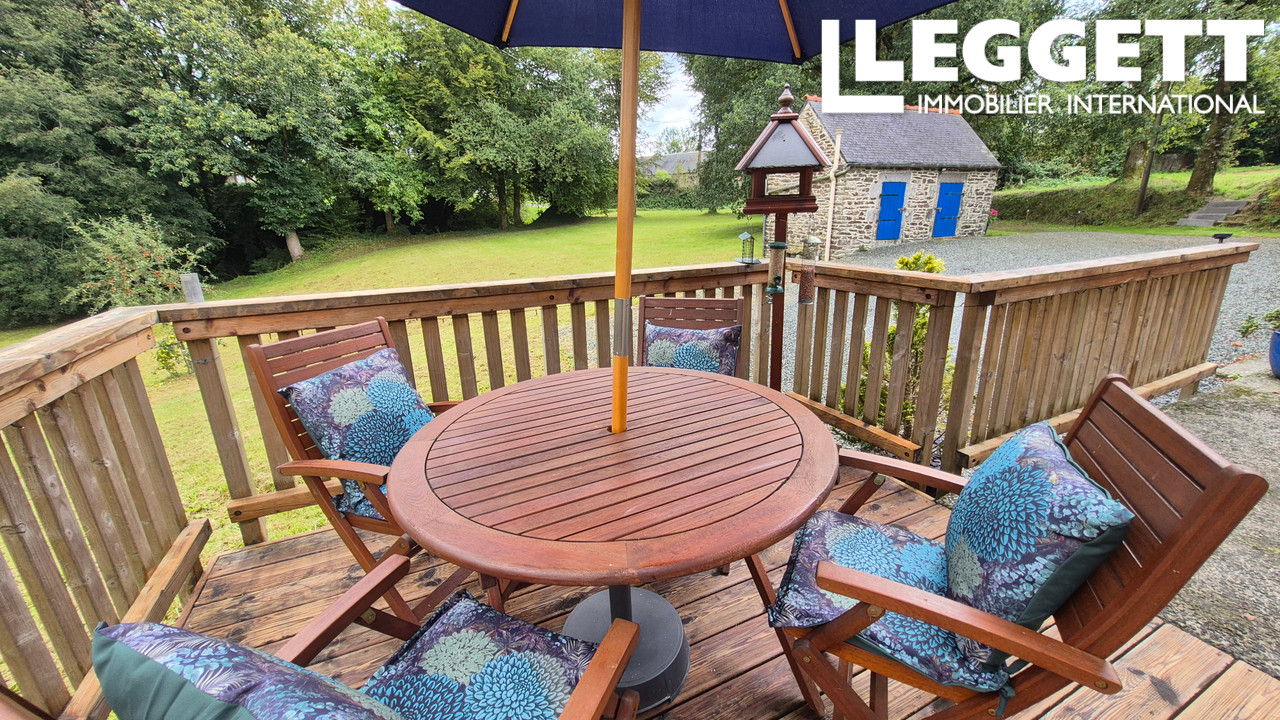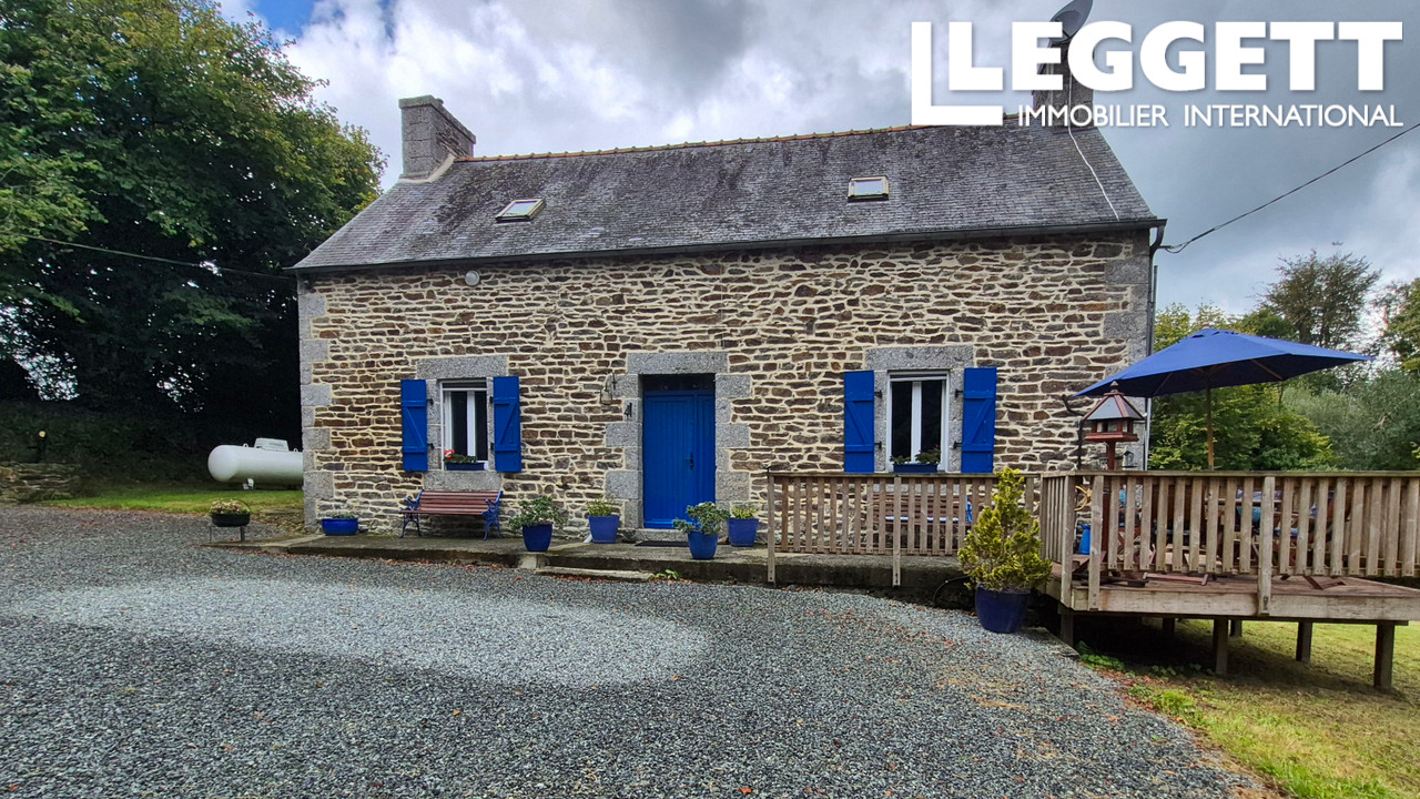 A40423JRD22 - Maison en pierre de 3 chambres avec dépendance et vaste terrain de 3740m² à Pont Melvez. Cette propriété est à voir absolument, elle est située dans un endroit très charmant et la terrasse qui entoure la maison est un endroit parfait pour profiter de la bonne vie ici en Bretagne centrale.
