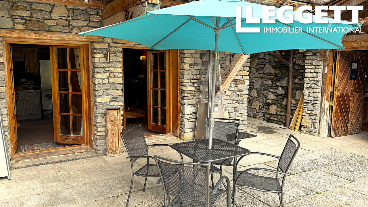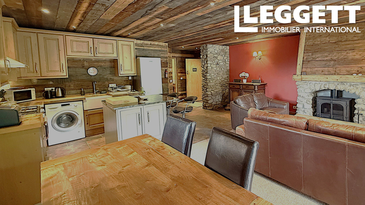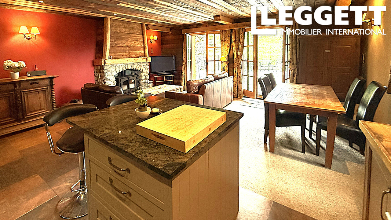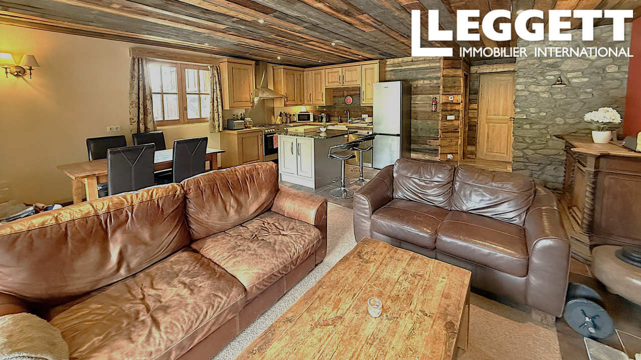 A37755JQB73 - Situé au coeur du quartier de la Bataillette à Sainte Foy Tarentaise, ce grand appartement traditionnel de style savoyard comprend un salon ouvert avec une cheminée en pierre et un poêle à bois, une cuisine entièrement équipée avec îlot, une salle à manger avec vue sur la montagnes, une chambre double avec terrasse au nord et une grande salle de bains.