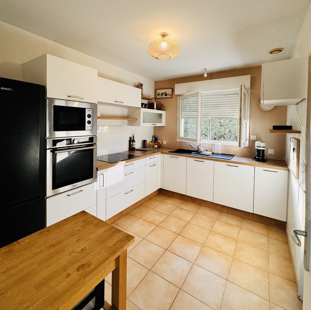Située au calme, cette maison individuelle de 107m² offre une pièce de vie traversante, une cuisine fonctionnelle, 3 chambres avec rangements, et un grand garage de 20m².