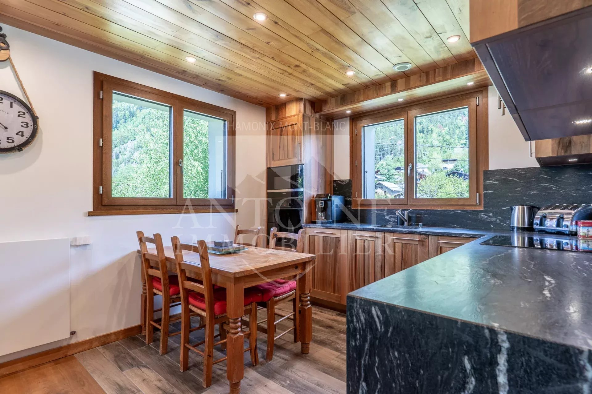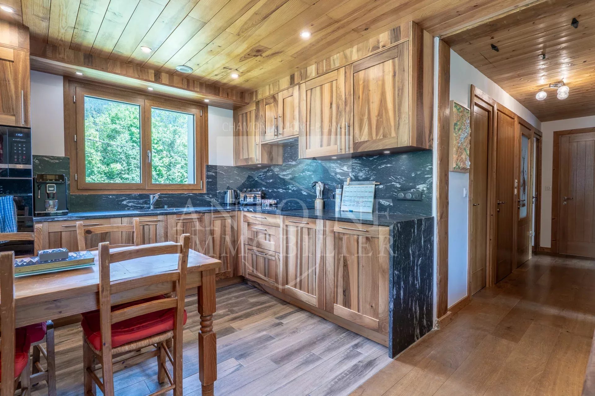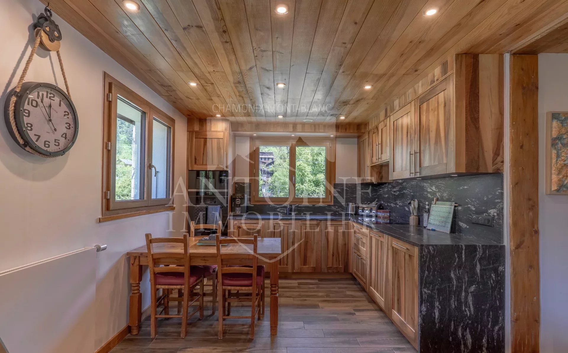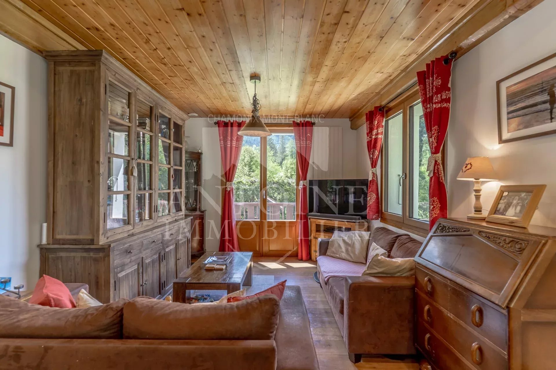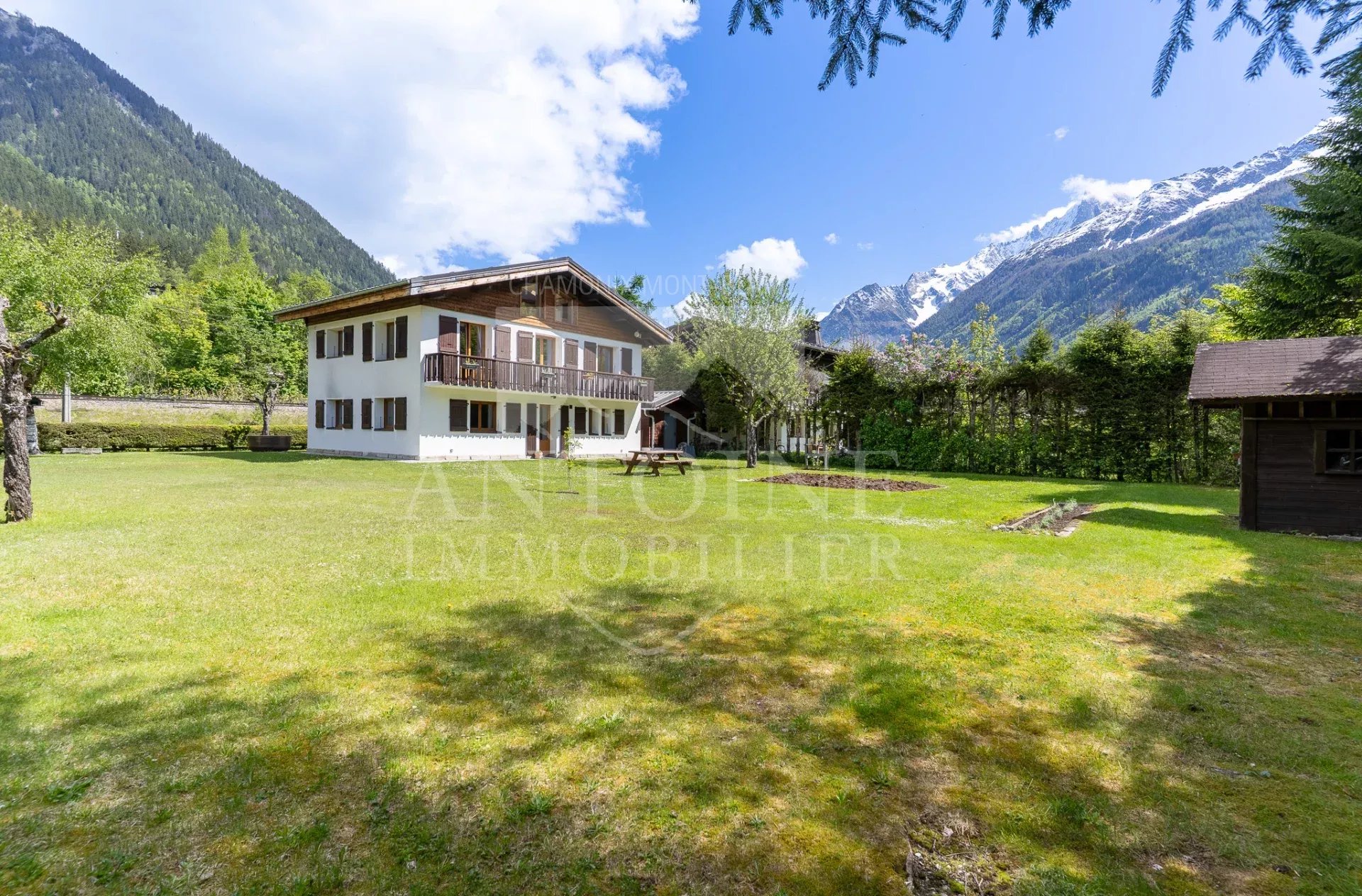 Rare opportunité à Chamonix : nichée dans un environnement calme et verdoyant à seulement un kilomètre de Chamonix, cette belle opportunité édifiée sur un terrain de 1 430 m2 accueille un chalet familial, un garage indépendant et un mazot.