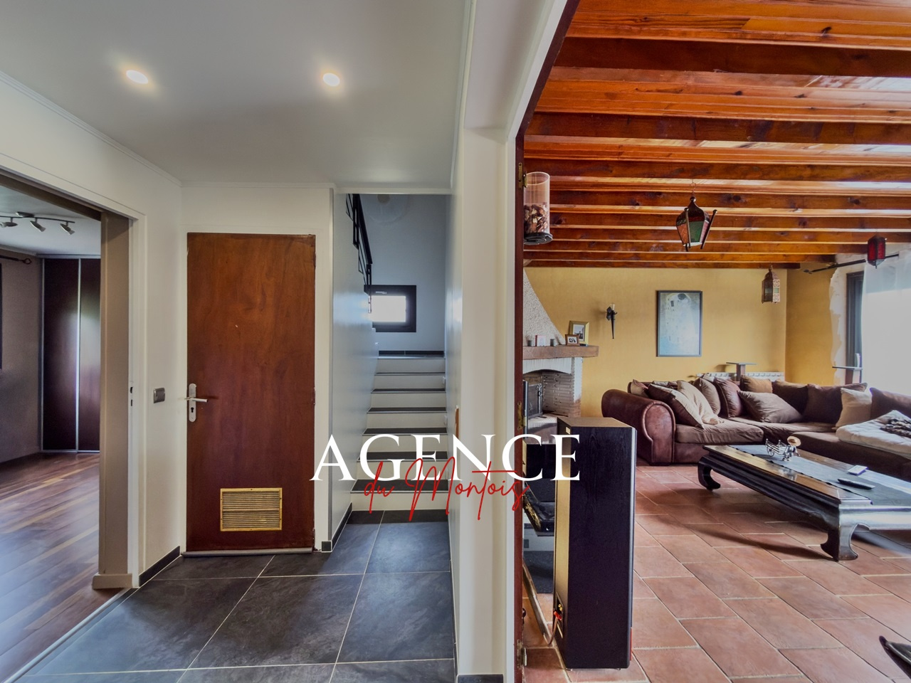 77 - Entre DONNEMARIE DONTILLY et MONTEREAU FAULT YONNE, à 10 mn de la gare, à 5 mn de l'A5, dans hameau aux alentours boisés et vallonnés, sur 920 m2 de jardin d'agrément clos, beau PAVILLON TRADITIONNEL de bonne construction (en briques rouges), sur sous-sol total, indépendant, en très bon état général, habitable de suite, rénové, intérieur lumineux :
