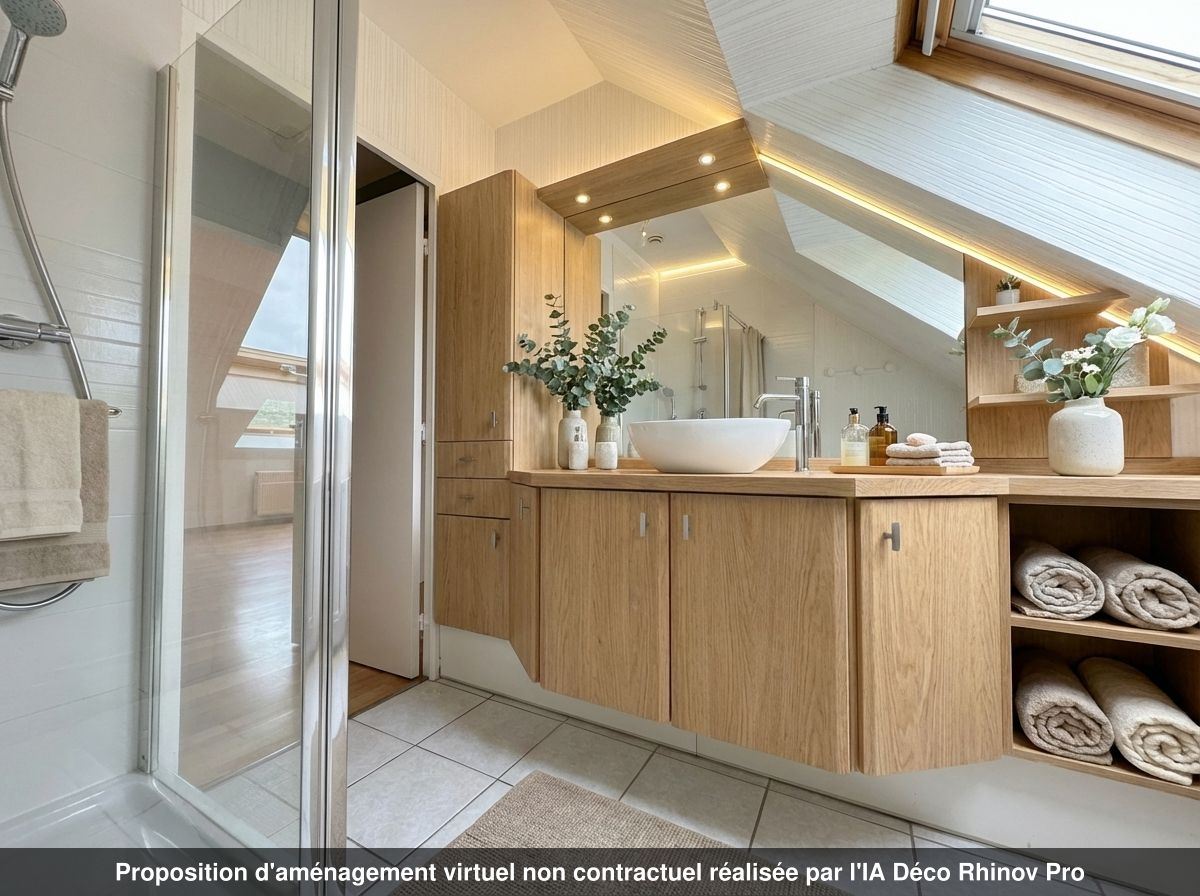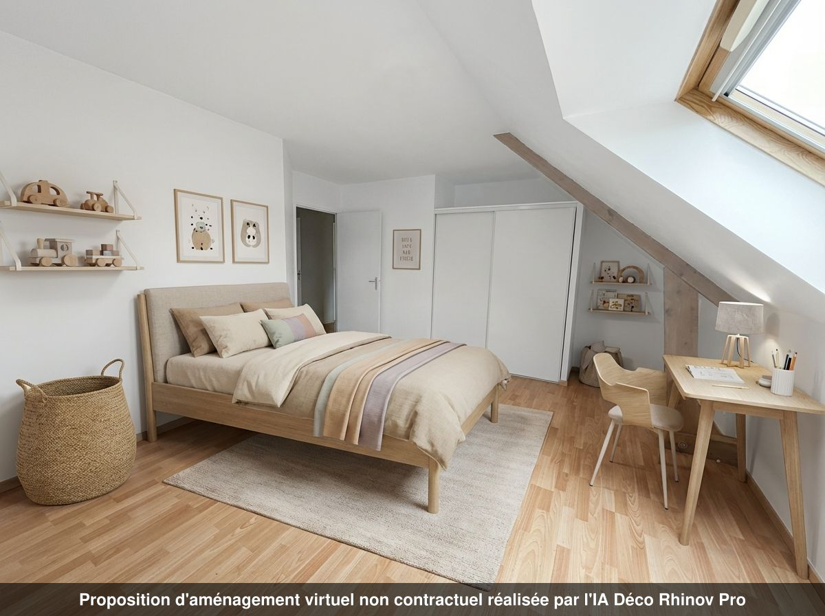La maison se compose d'une grande pièce de vie lumineuse sans vis-à-vis avec espace cuisine (et cellier), d'une entrée, d'un wc et d'une suite parentale au rez-de-chaussée. A l'étage 3 chambres dont 2 grandes, une salle de bains et une mezzanine.