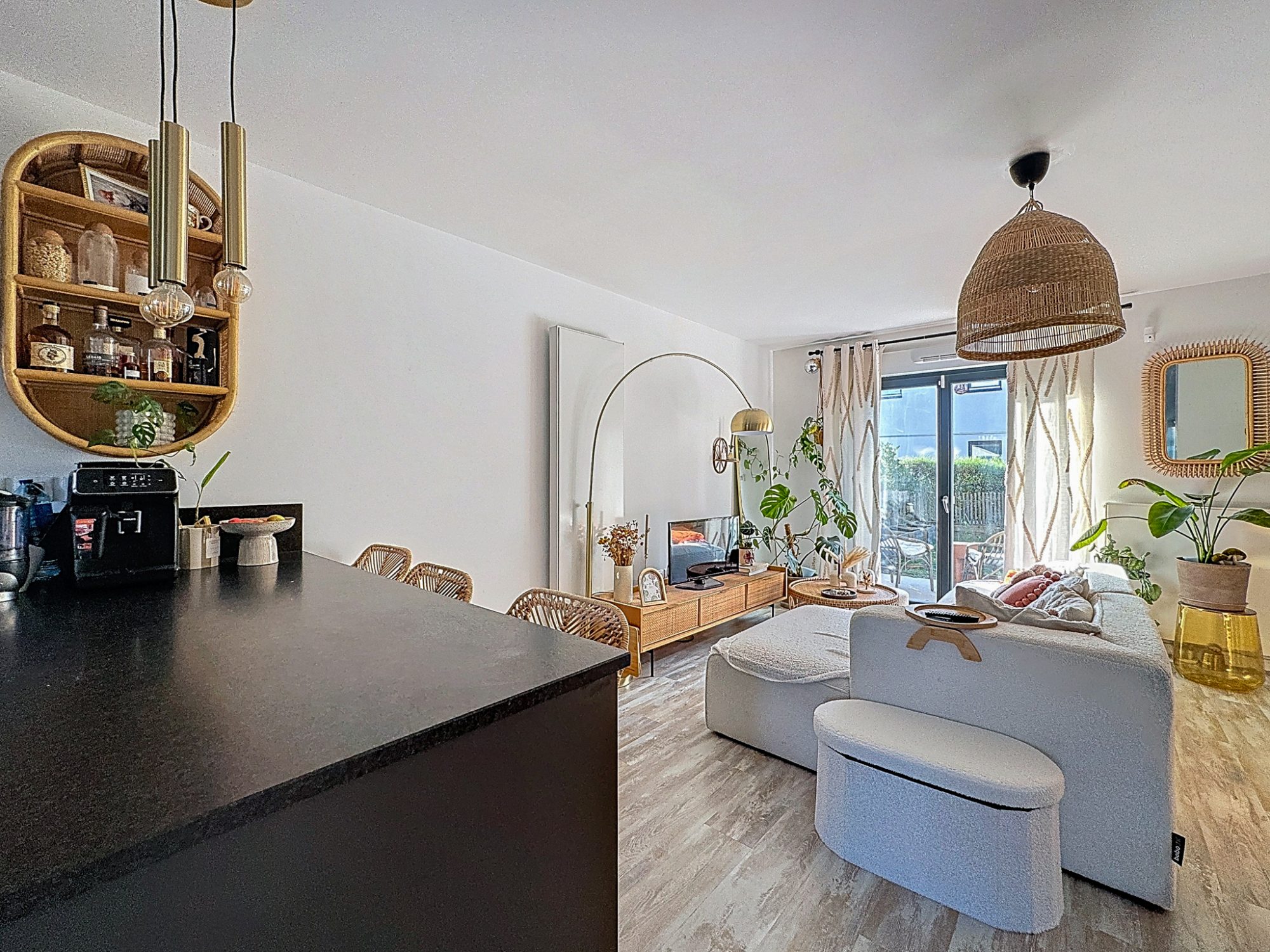Au rez-de-chaussée, vous profiterez d'un vaste séjour traversant baigné de lumière avec sa cuisine ouverte, aménagée et équipée. Totalisant plus de 35m², il offre un double accès extérieur, d'un côté une terrasse et un jardin d'environ 50 m² privatifs clôturé, de l'autre un balcon d'environ 11 m². Ce niveau comprend également un WC indépendant ainsi que deux espaces de stockage type cellier.