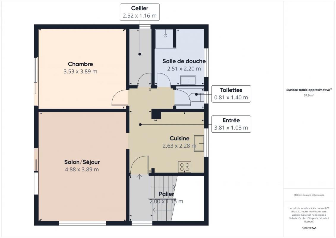 - Émissions de gaz à effet de serre : 58 kg CO2/m².an (Classe E)