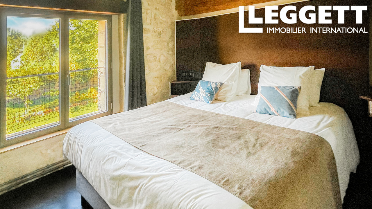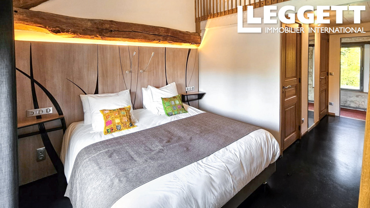La partie longère de 236m² est aujourd'hui aménagée pour l'accueil : elle dispose au rez-de-chaussée d'une grande salle de séminaire (49m²), idéale pour organiser réceptions ou événements professionnels (20 à 25 personnes). Une vaste salle à manger de 48m² avec une hauteur sous plafond surprenante, prolongée par une cuisine attenante, complète cet espace. A l'étage, la partie nuit comprend 3 chambres de 19 à 22m², disposant chacune d'une salle d'eau et d'une mezzanine.