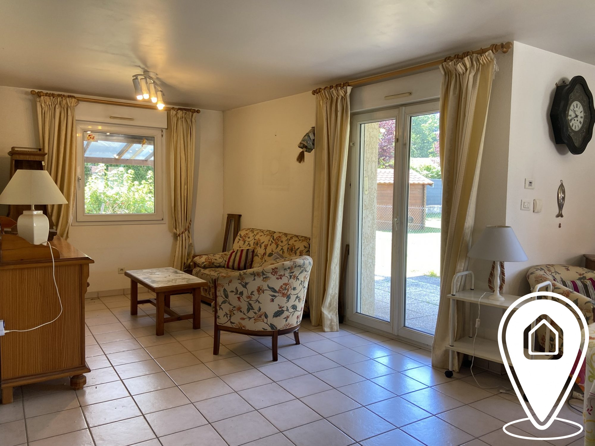 De plain-pied, elle se compose d'une entrée, d'un salon/séjour avec accès à la terrasse, d'une cuisine équipée et ouverte, de 2 chambres, d'une salle de bain avec WC, d'une buanderie pouvant être transformée en une 3ème chambre, d'un garage et d'un abri de jardin.