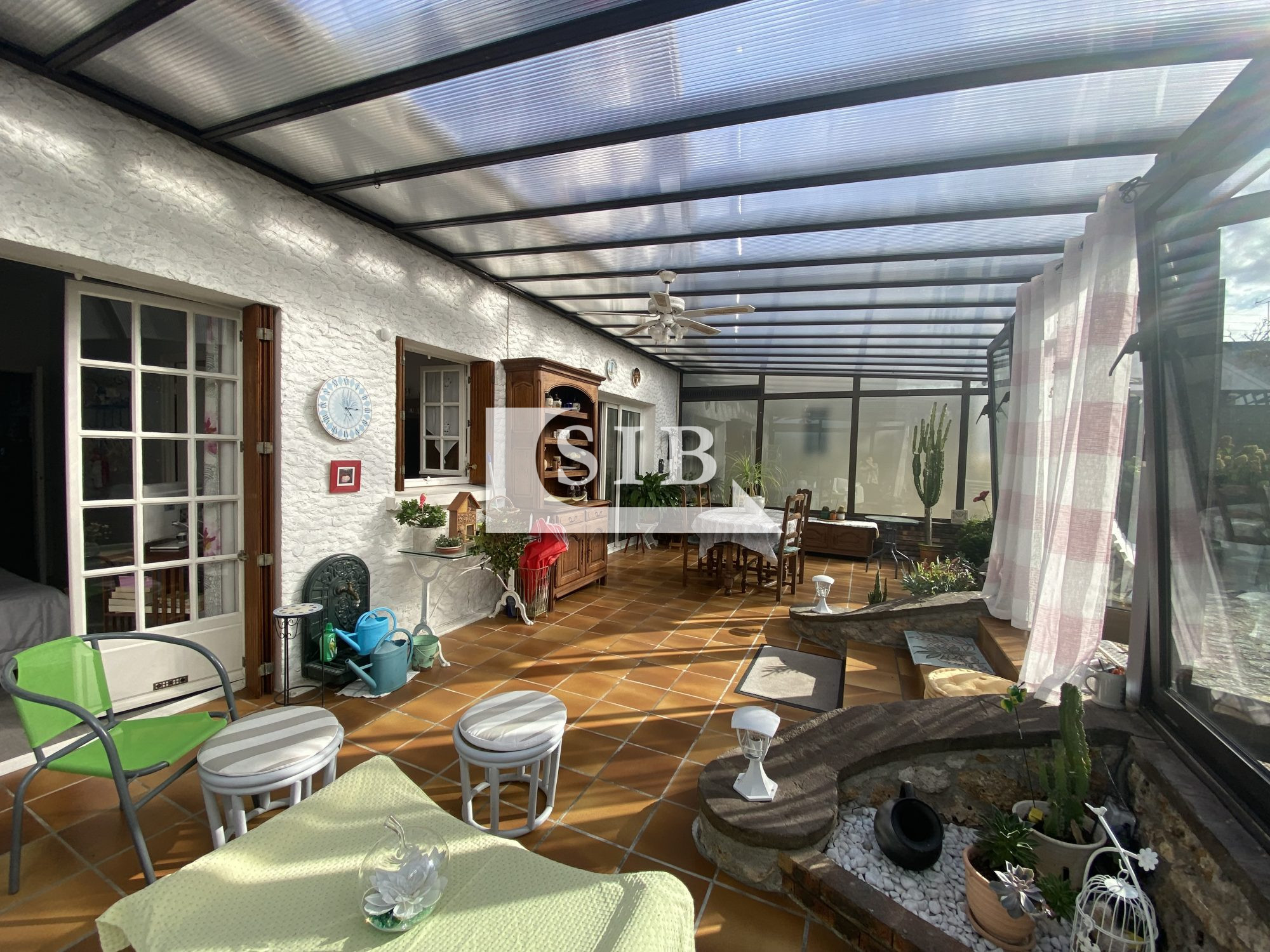 A l'extérieur, un beau jardin arboré, un potager, une grande dépendance en dur avec un cave à vin, un bûcher attenant, et une petite serre. Chauffage au gaz, double vitrage PVC avec store solaire, porte fenêtre à galandage, les fenêtres de la véranda sont oscillo-battantes.