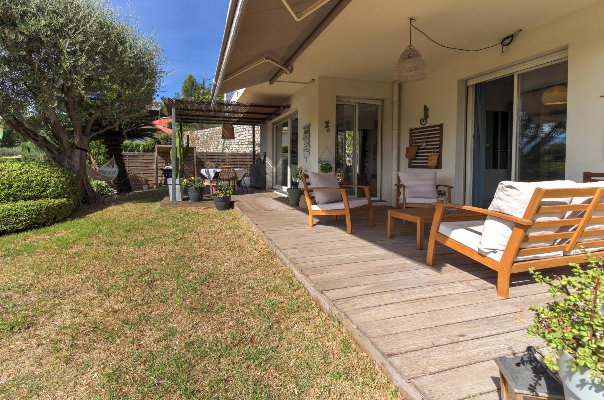 Le séjour et les chambres communiquent harmonieusement avec la terrasses prolongée du jardin privatif, permettant de profiter pleinement de la vie en extérieur et de moments conviviaux en famille ou entre amis. L'ensemble de l'appartement est au calme, sans vis-à-vis, dans une atmosphère propice à la détente.