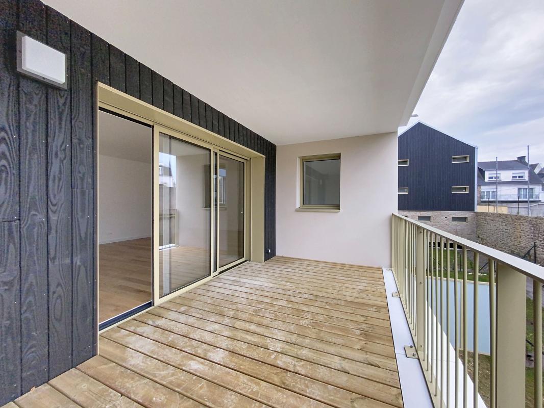 Au coeur de la résidence Le Cottage à Ploemeur, idéalement située à deux pas de la place de l'Église et des commerces, découvrez ce spacieux appartement neuf au 1er étage avec terrasse, alliant confort moderne et élégance architecturale.